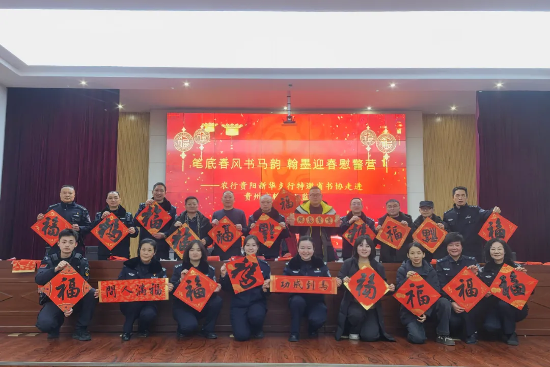 新春将至,年味渐浓;墨香警营,妙笔贺春。2月9日,轿子山监狱联合农行贵阳新华支行邀请贵州省书法家协会会员走进警营,开展主题为“笔底春风书马韵 翰墨迎春慰警营”活动,以此弘扬中华优秀传统文化,丰富警营文化生活,让民警职工在笔墨书香中感受春节的氛围。