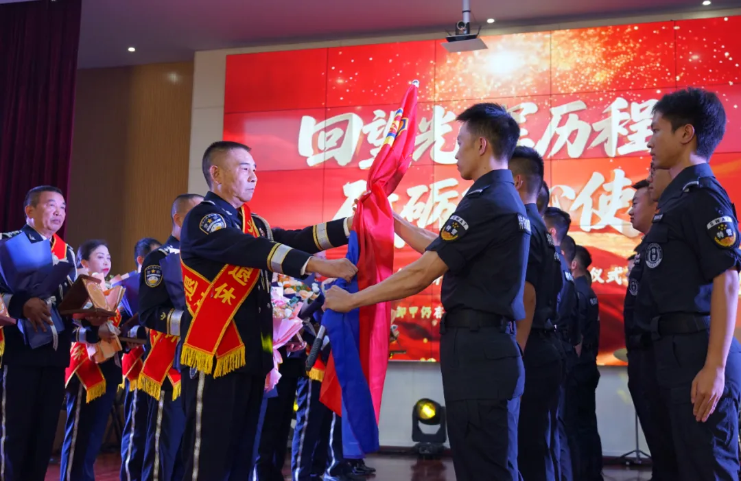 崭新的警旗在退休民警与新警代表的手中郑重传递,这一递一接之间,不仅是监狱工作责任的交接,更是一代代监狱民警精神的传承。现场响起阵阵热烈掌声,每一声都饱含着感动与力量,将仪式氛围推向高潮。