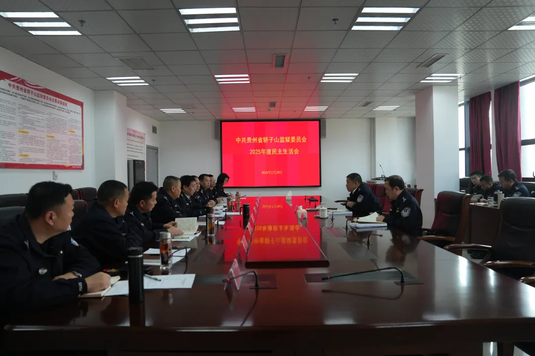 按照党中央和省委部署要求,根据厅局党委工作安排,2月28日,轿子山监狱党委召开2025年度民主生活会,深入学习贯彻习近平新时代中国特色社会主义思想,全面贯彻落实党的二十届四中全会精神,锲而不舍落实中央八项规定精神,推进作风建设常态化长效化,以优良作风凝心聚力、真抓实干。省监狱局党委委员、二级巡视员兼贵州黔新企业集团有限公司总经理何坚到会指导并作点评讲话,轿子山监狱党委书记、监狱长郑家军主持会议。