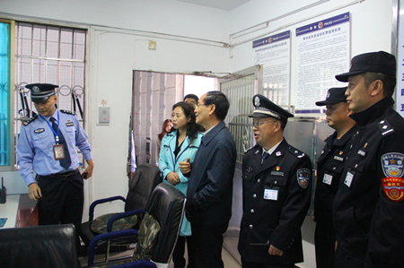 10月13日下午,司法部装备财务保障局副局长操菊平一行来到凯里监狱,就监狱警务用枪、枪支弹药管理、警车管理、税务资金使用和企业目录管理等进行专题调研。省司法厅装备财务保障处、省监狱局后勤处等有关负责同志陪同调研。