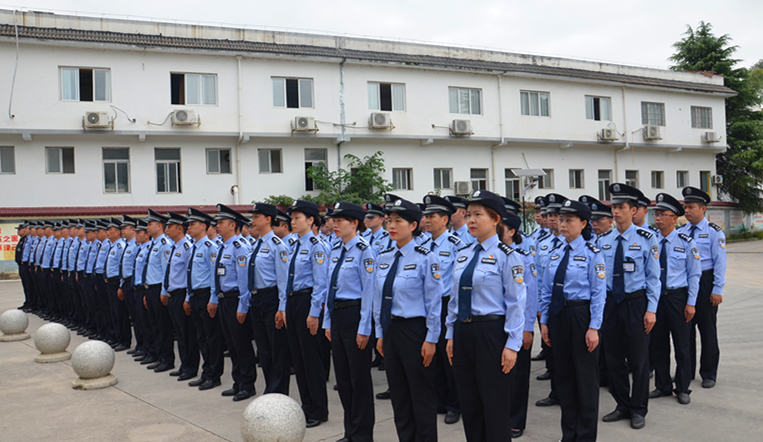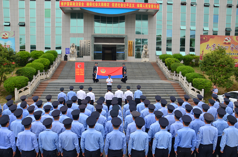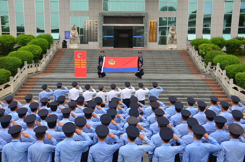 在监狱办公大楼前,参加宣誓仪式的民警代表精神抖擞、整齐列队,全体奏唱《中国人民警察警歌》,铿锵有力的歌声在监狱办公区域回荡,迅速点燃现场民警的豪情斗志。