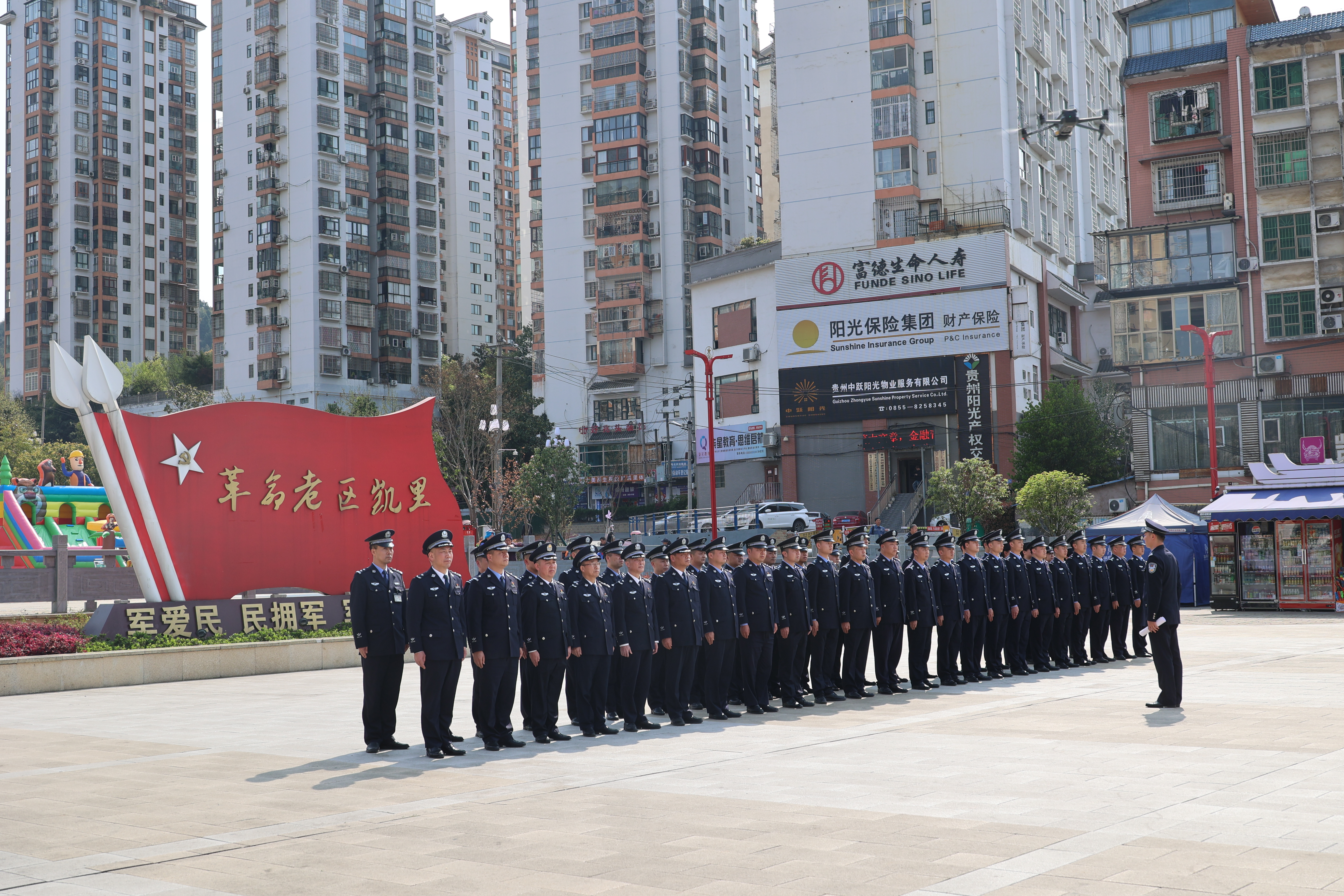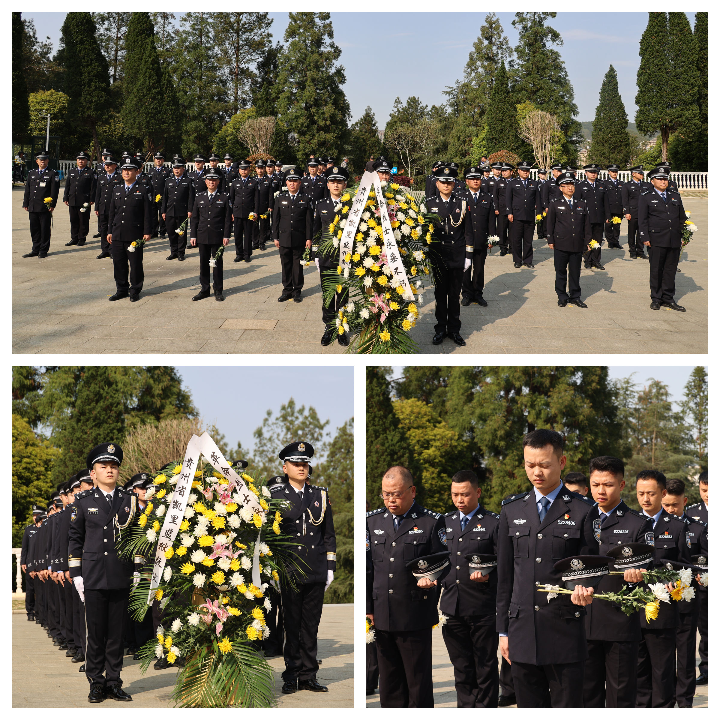 松柏凝翠,丰碑巍峨。在凯里市金泉湖烈士陵园内,民警们整齐列队,在革命烈士纪念碑前脱帽默哀,向英烈们敬献花篮和鲜花,祭奠革命烈士的不朽英灵,缅怀英雄们的丰功伟绩。