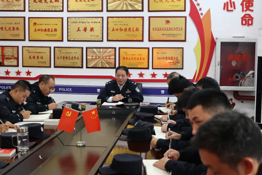 安洪强调:一是要强化学习贯彻。党的二十届四中全会对平安中国、法治中国建设提出了更高要求,作为政治机关、刑罚执行机关,要坚持把学习贯彻党的二十届四中全会精神作为当前和今后一个时期的重大政治任务,始终在“深学”上做文章、在“悟透”上下功夫、在“笃行”上求实效,通过“三会一课”、专题研讨、个人自学等多种形式,迅速掀起学习贯彻党的二十届四中全会精神热潮。二是统筹好安全与发展。当下正值岁末年初,全监上下要坚持底线思维,统筹做好安全和发展两件大事,持续构建“大安全”格局,织密安全防护网,切实提高防范化解风险挑战能力,坚决做到守土有责、守土负责、守土尽责。三是要加强队伍建设。要持续深耕细作“八大警务”建设,大力加强民警队伍思想政治、业务能力和纪律作风建设,要充分发挥党员先锋模范作用和党支部战斗堡垒作用,锻造一支忠诚干净担当的高素质专业化监狱人民警察铁军。四是持续推进规范化管理工作。坚持以规范化管理为抓手、“五级包保”为主线,压紧压实各级责任,持续巩固规范化管理成效,不断提升民警规范执法水平,为建设平安监狱、法治监狱、文明监狱作出新的更大的贡献。