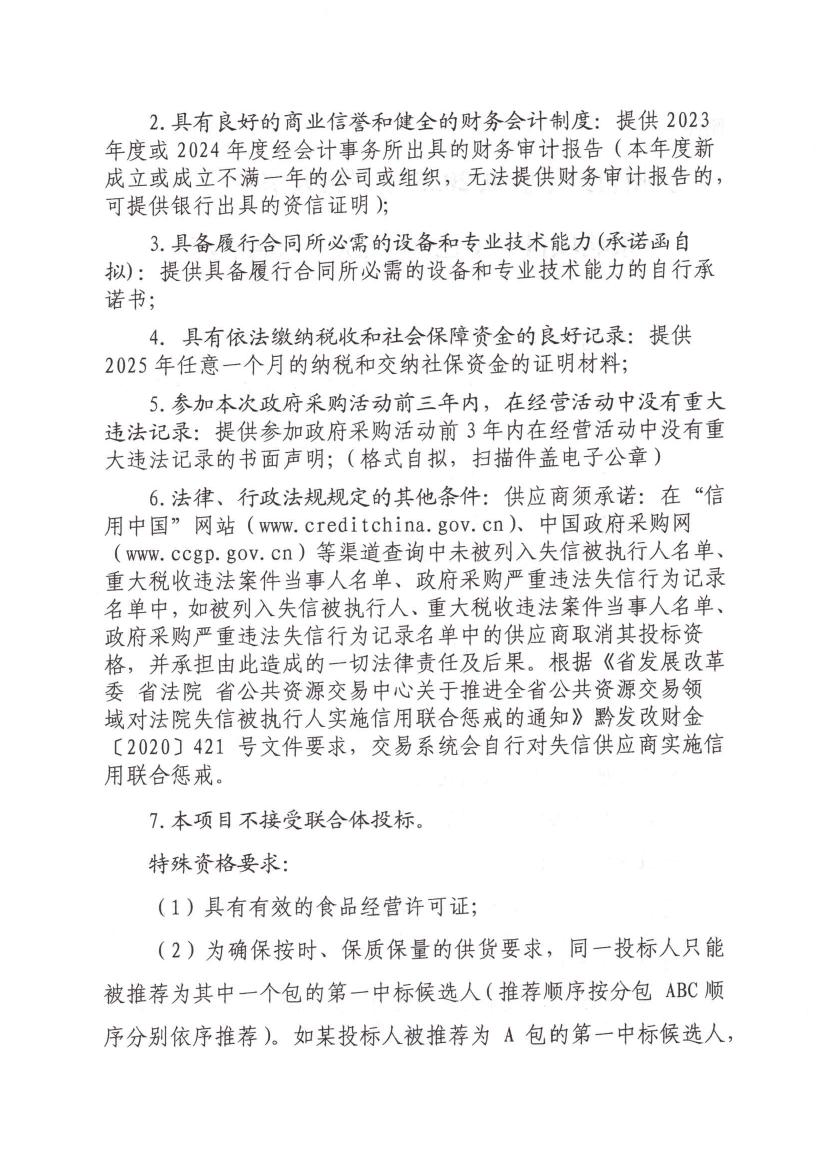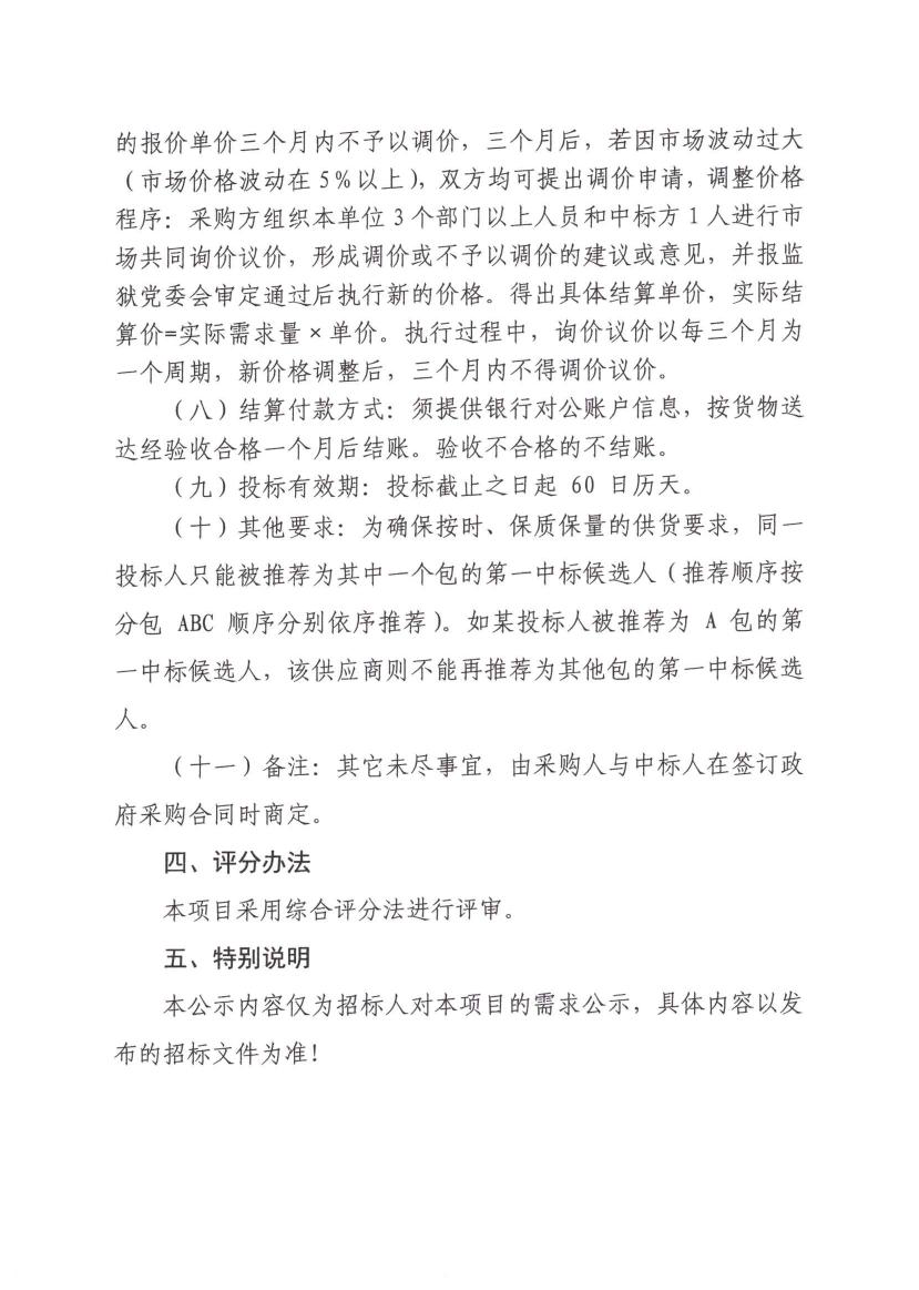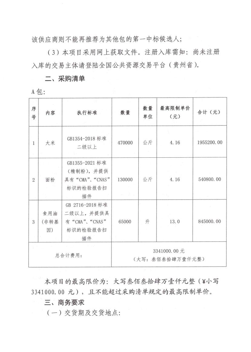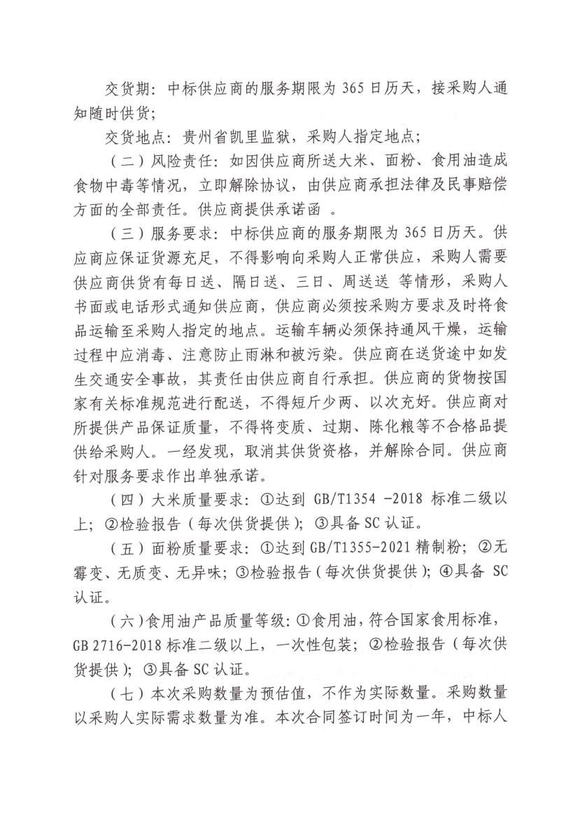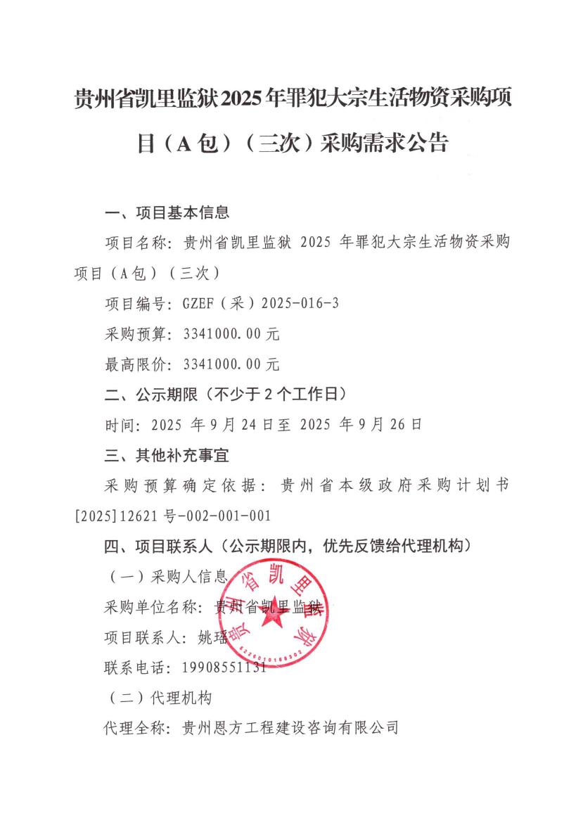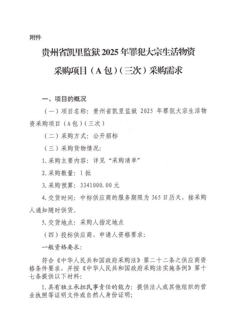 贵州省凯里监狱2025年罪犯大宗生活物资采购项目(A包)(三次)采购需求公告