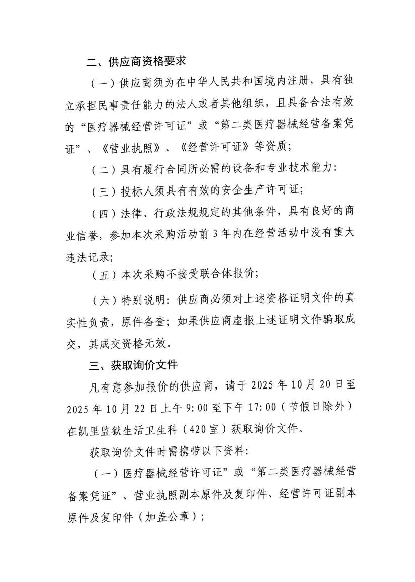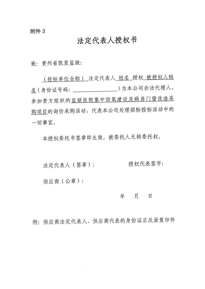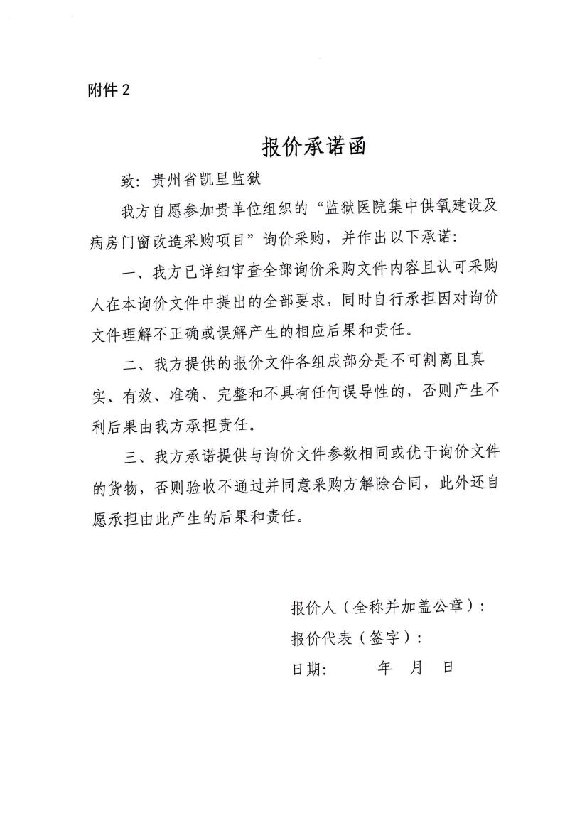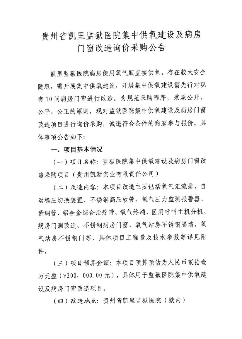 贵州省凯里监狱医院集中供氧建设及病房门窗改造询价采购公告