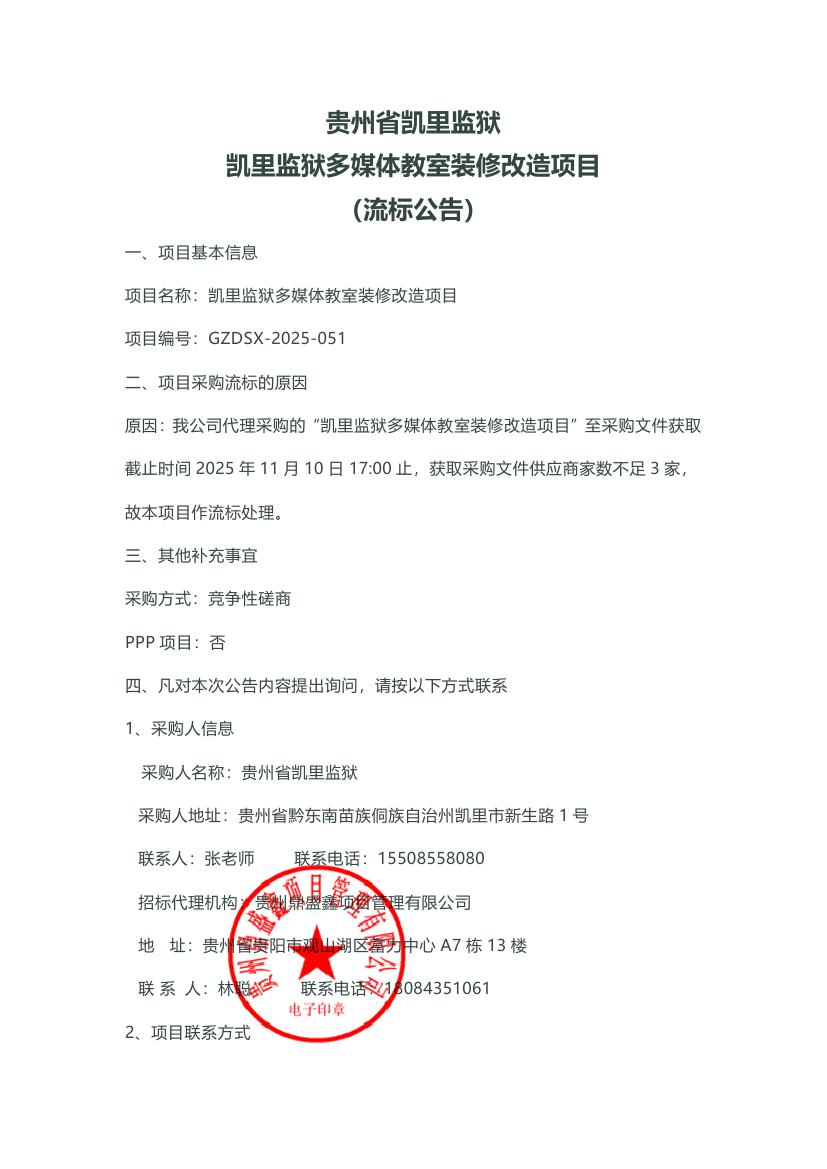 贵州省凯里监狱多媒体教室装修改造项目(流标公告)