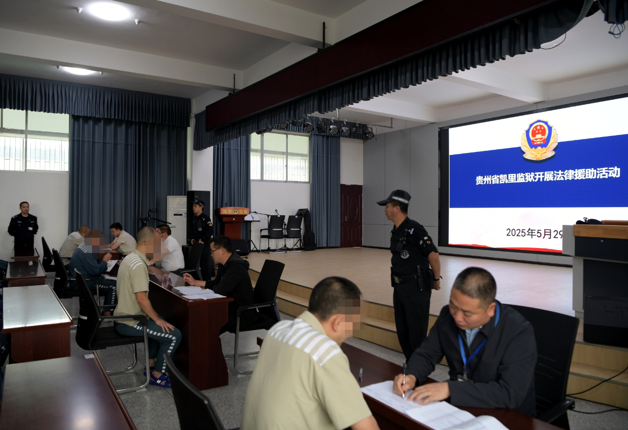 为全面贯彻习近平法治思想,用心用情做好罪犯教育改造工作,切实提升教育改造质效,2025 年 5 月 29 日,贵州省凯里监狱携手凯里市司法局,邀请贵州贵信律师事务所的 4 名专业律师走进监狱,为 20 名提交法律援助申请的罪犯开展了一场意义深远的法律援助活动。