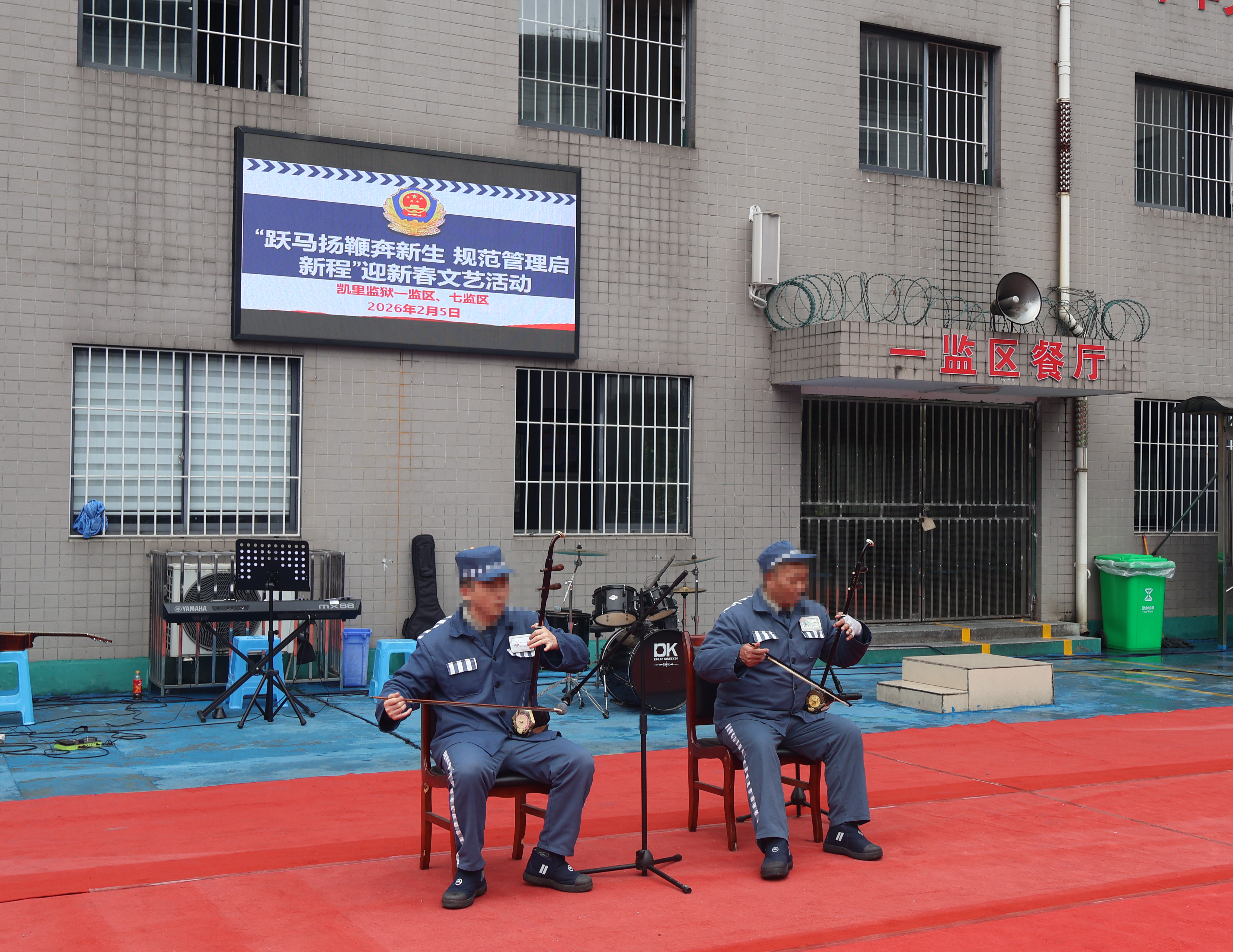 凯歌辞旧岁,瑞马迎新春。为充分发挥文化教育的浸润改造功能,营造积极、健康、向上的节日氛围,激励服刑人员在新的一年里积极改造、奔向新生,全面检验和展示规范化管理成果。近日,凯里监狱一监区联合七监区以“跃马扬鞭奔新生 规范管理启新程”为主题,精心组织举办了一场别开生面的迎新春文艺活动,活动内容涵盖文艺表演、知识竞答和队列训练,既是文化盛宴,更是一堂生动的思想教育与行为规范公开课。