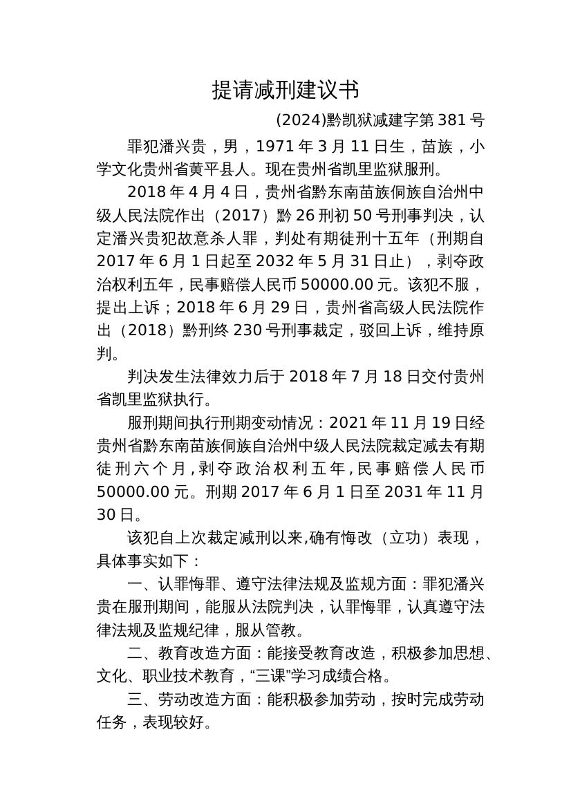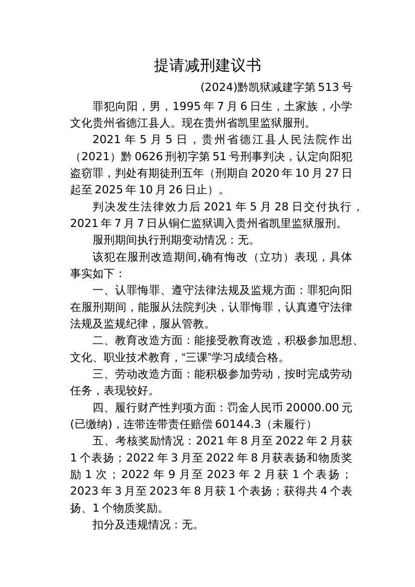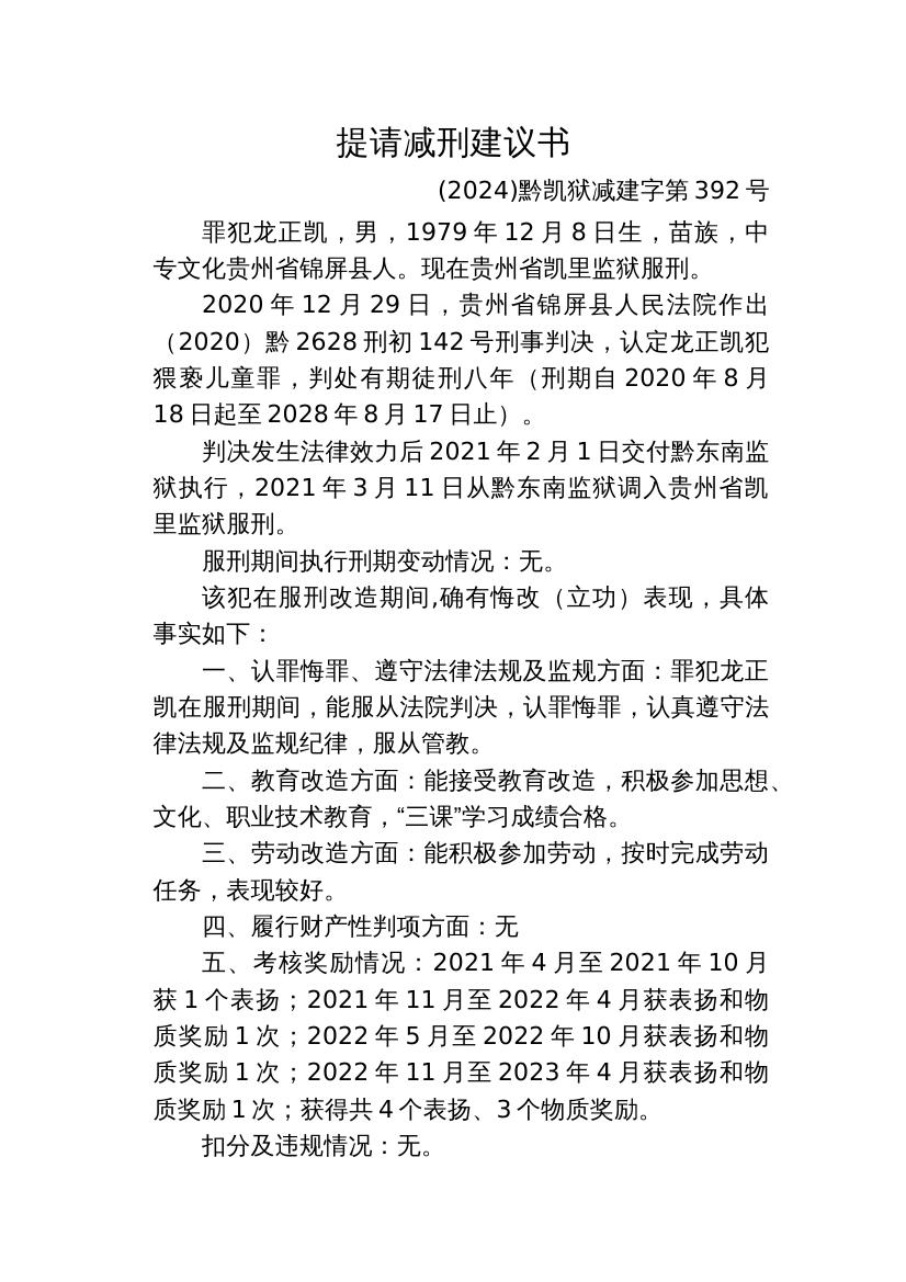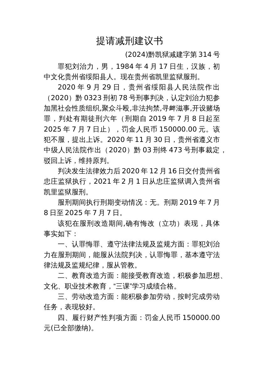提请减刑建议书(2024)黔凯狱减建字(第314号-第504号)