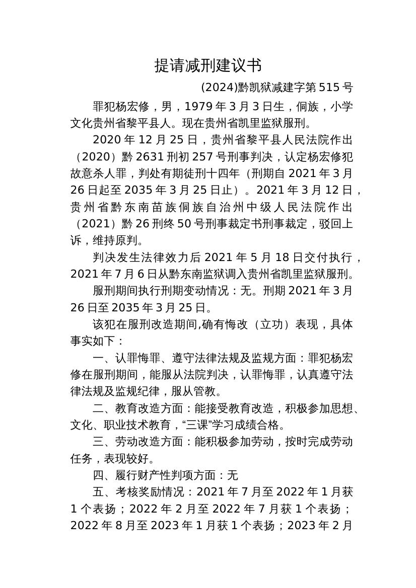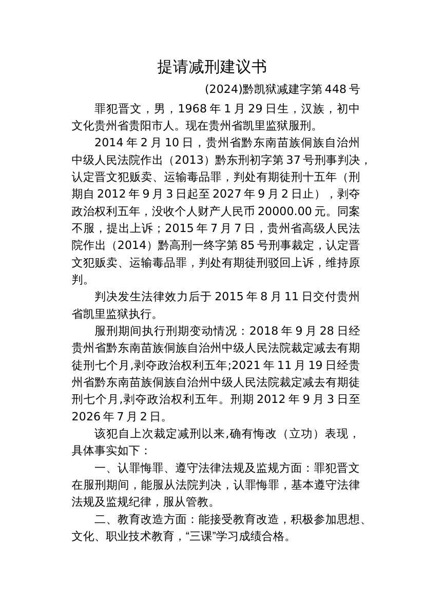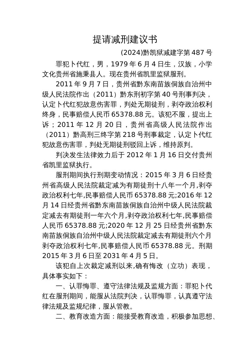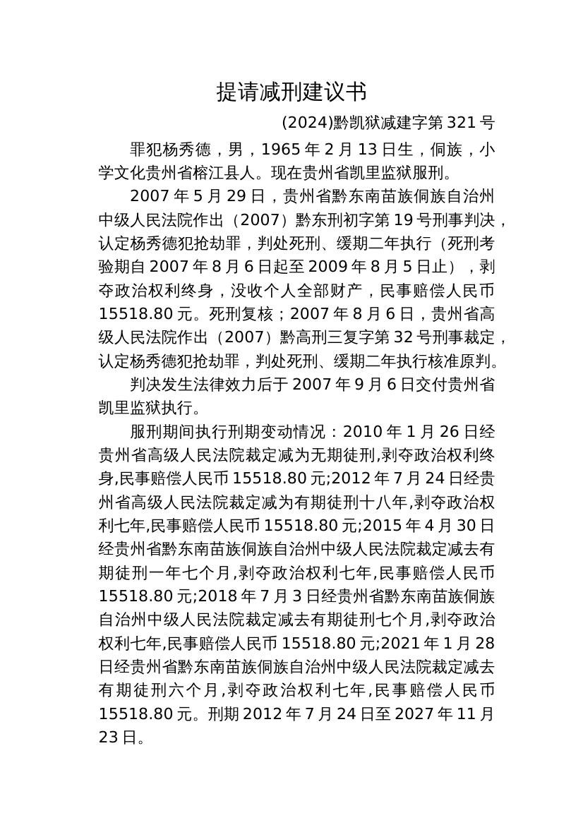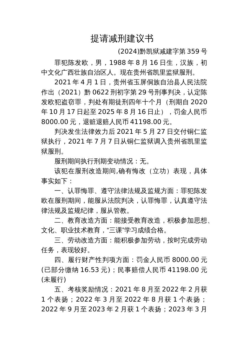 提请减刑建议书(2024)黔凯狱减建字(第314号-第504号)