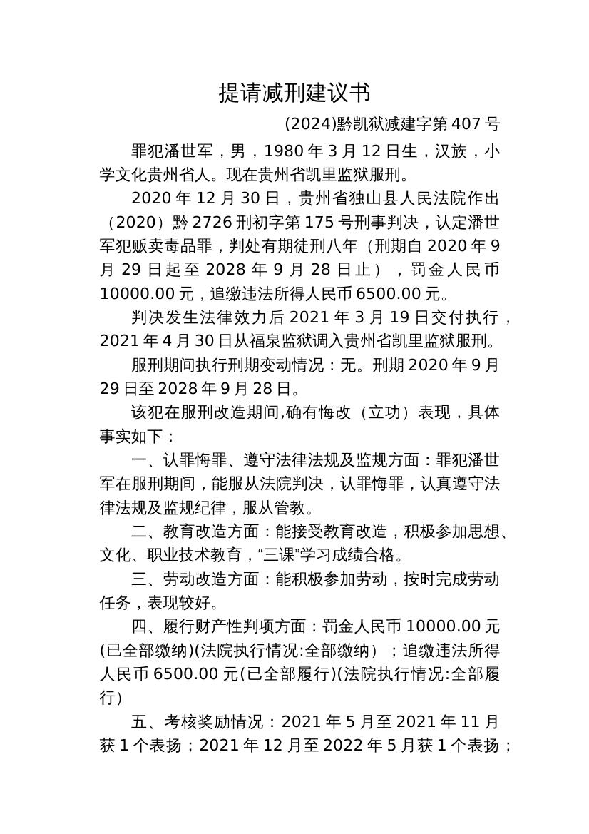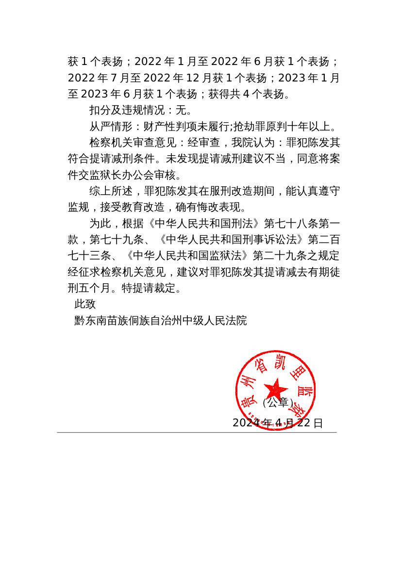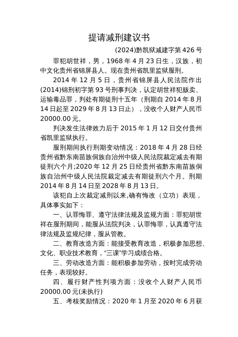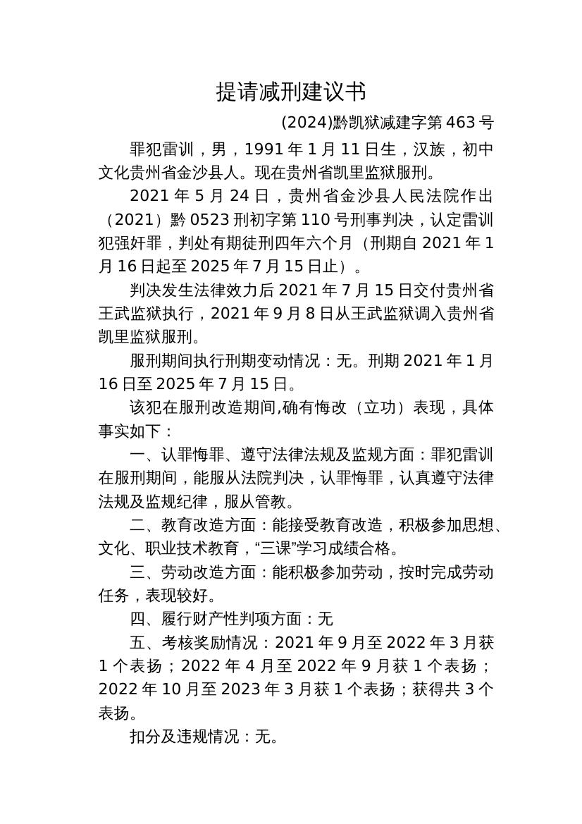 提请减刑建议书(2024)黔凯狱减建字(第314号-第504号)