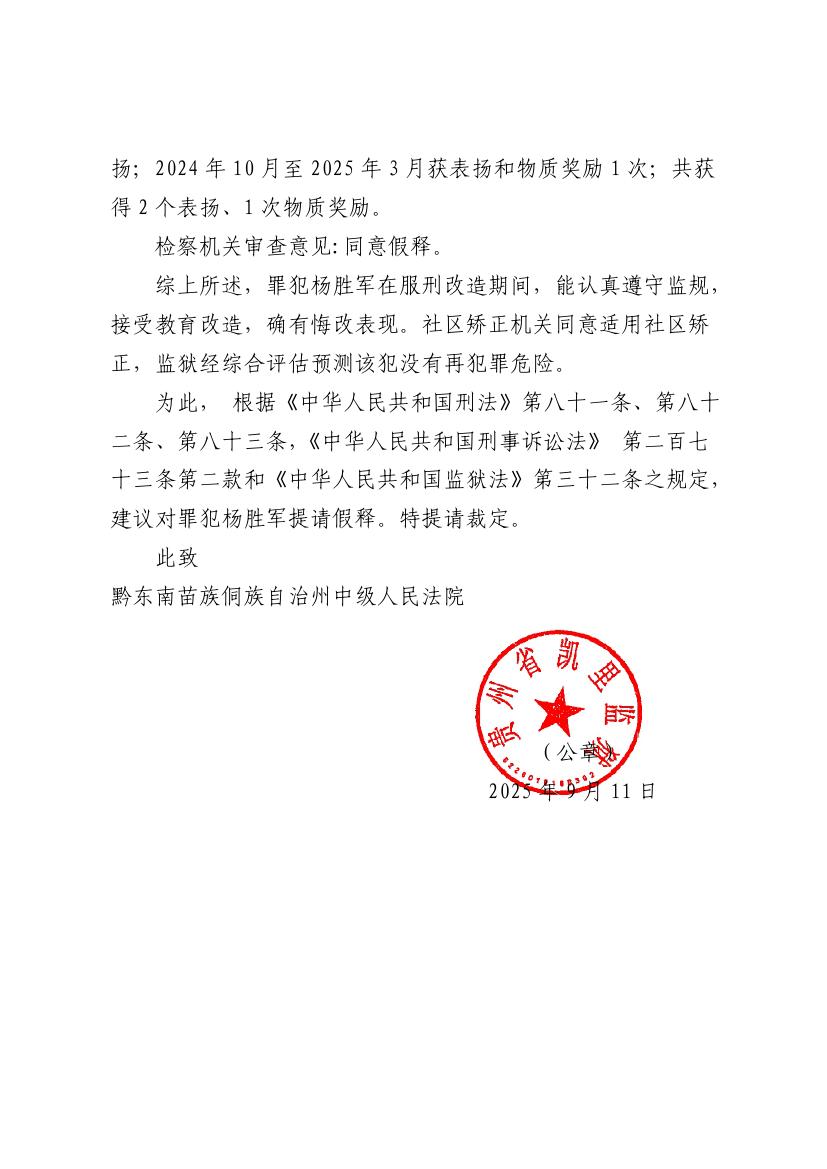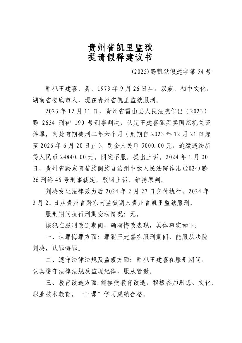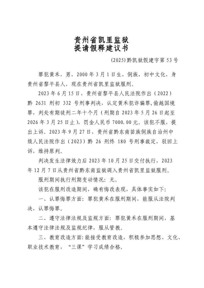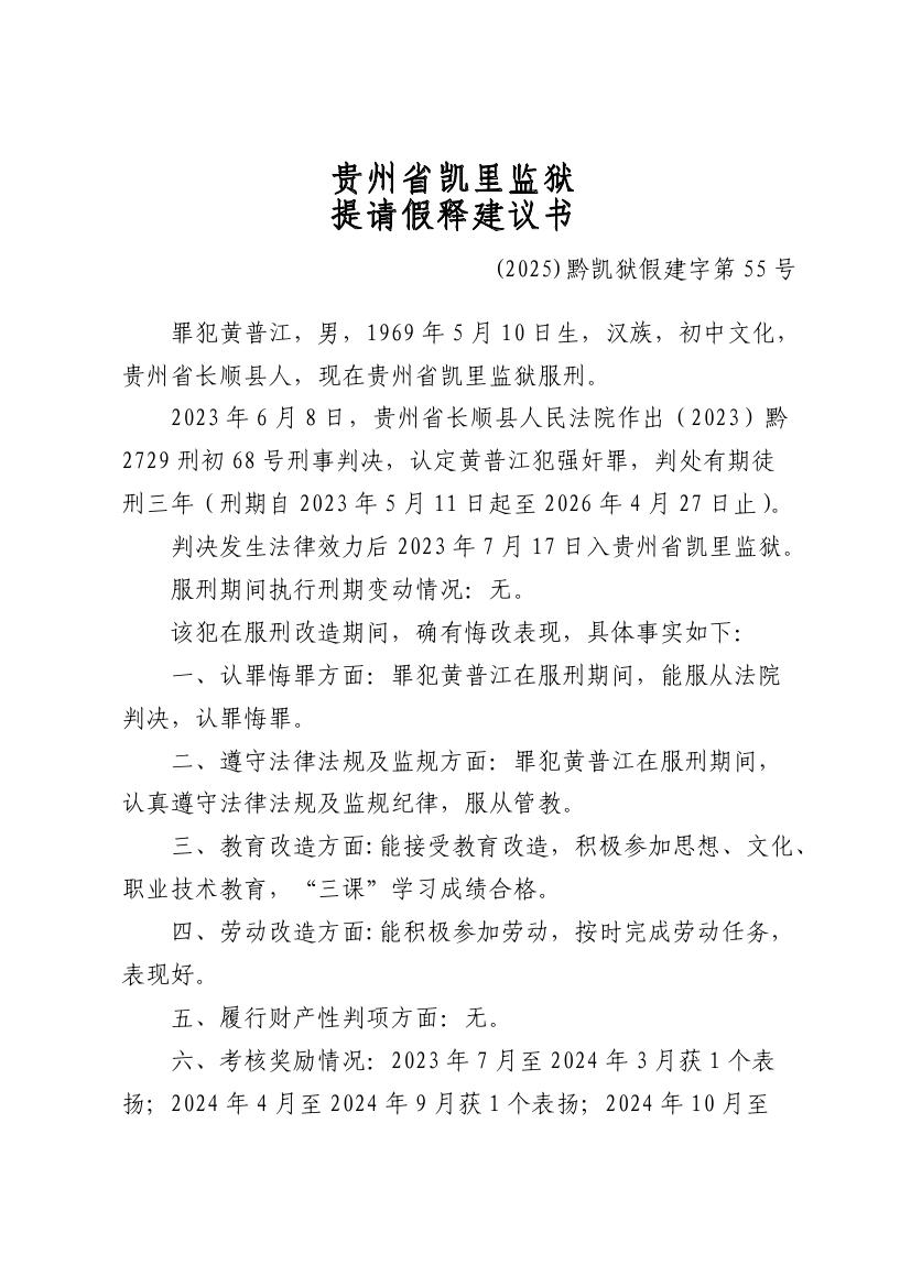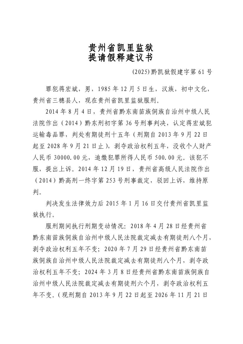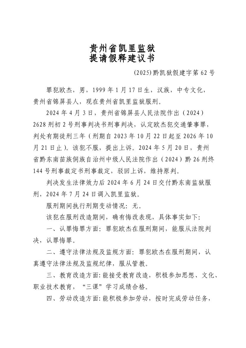 提请减刑建议书(2025)黔凯狱假建字第47号-62号