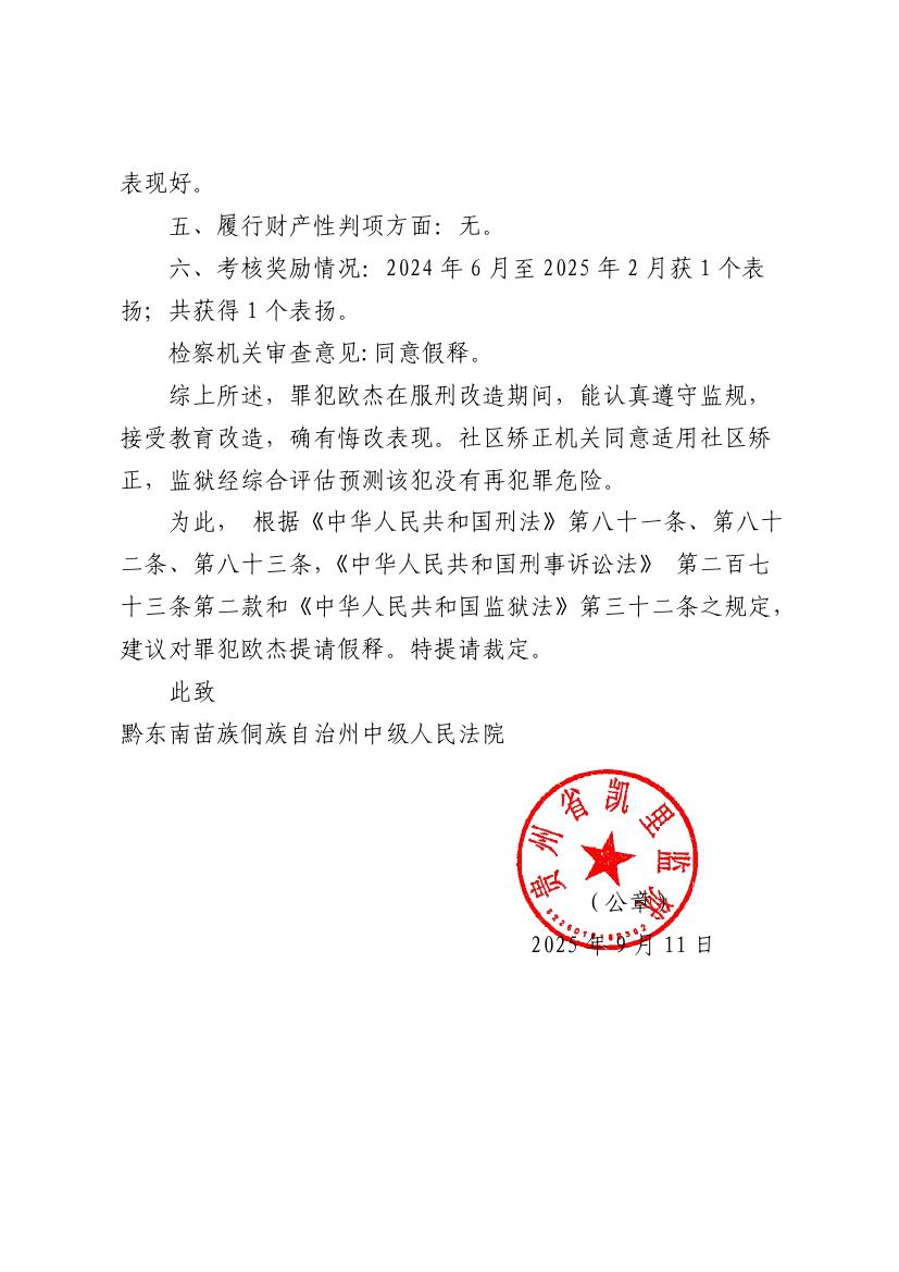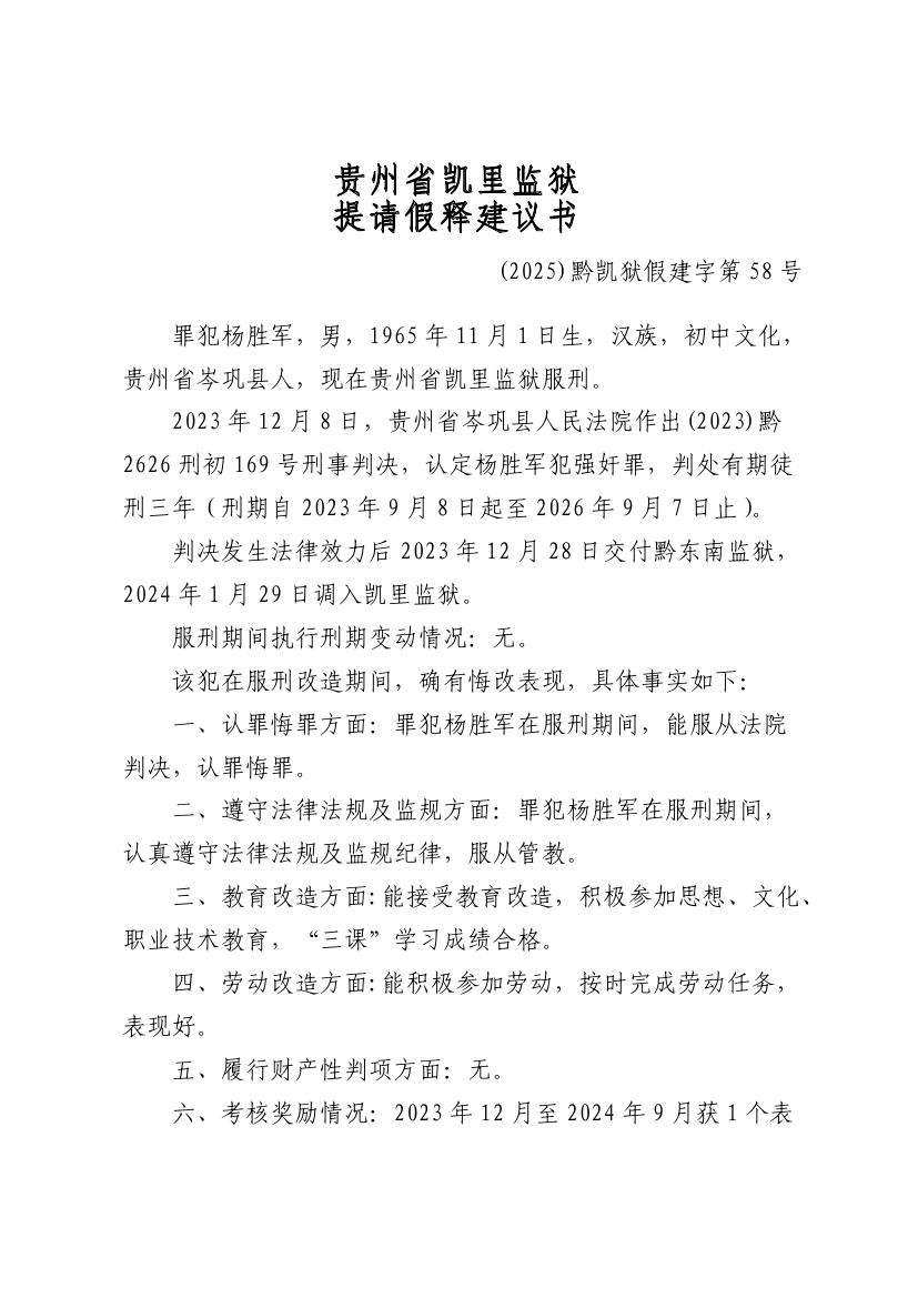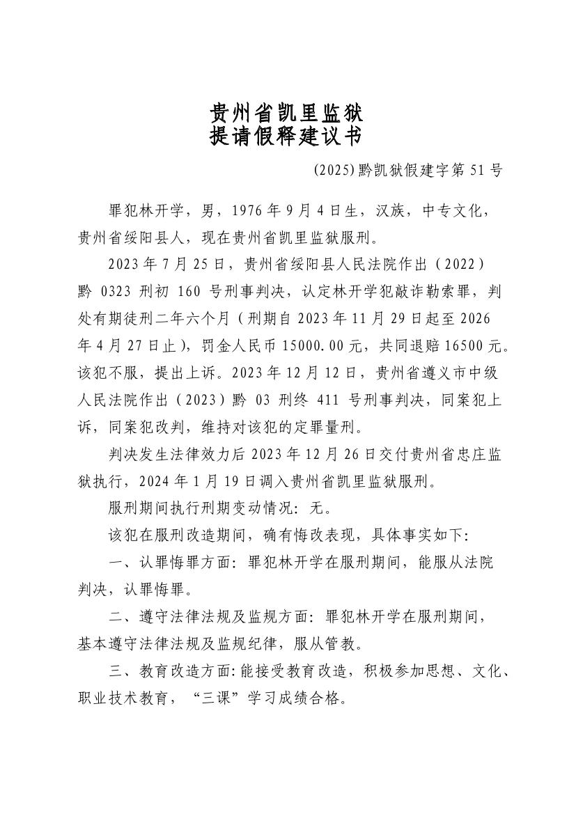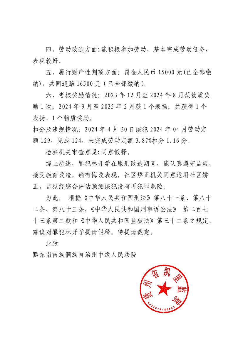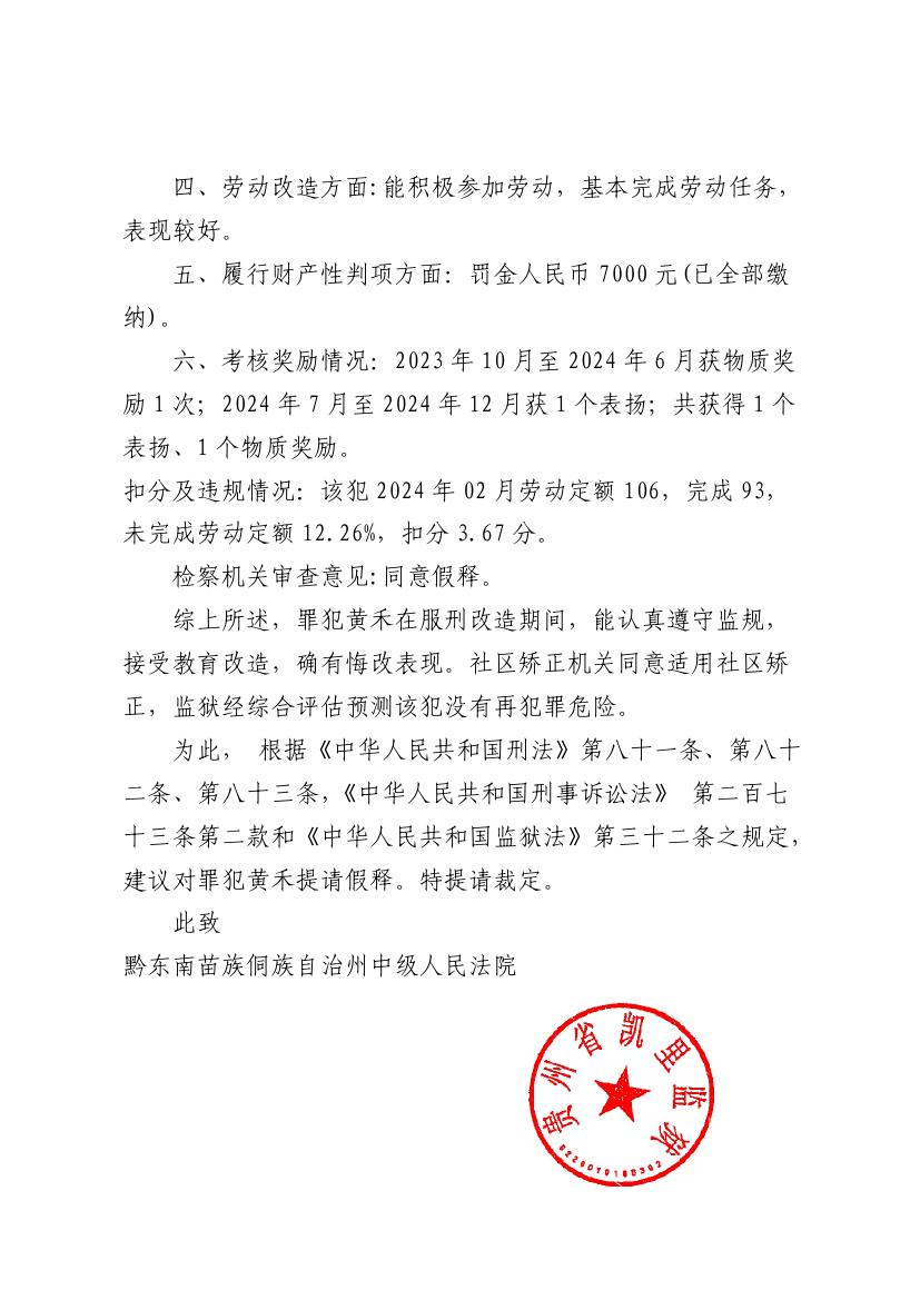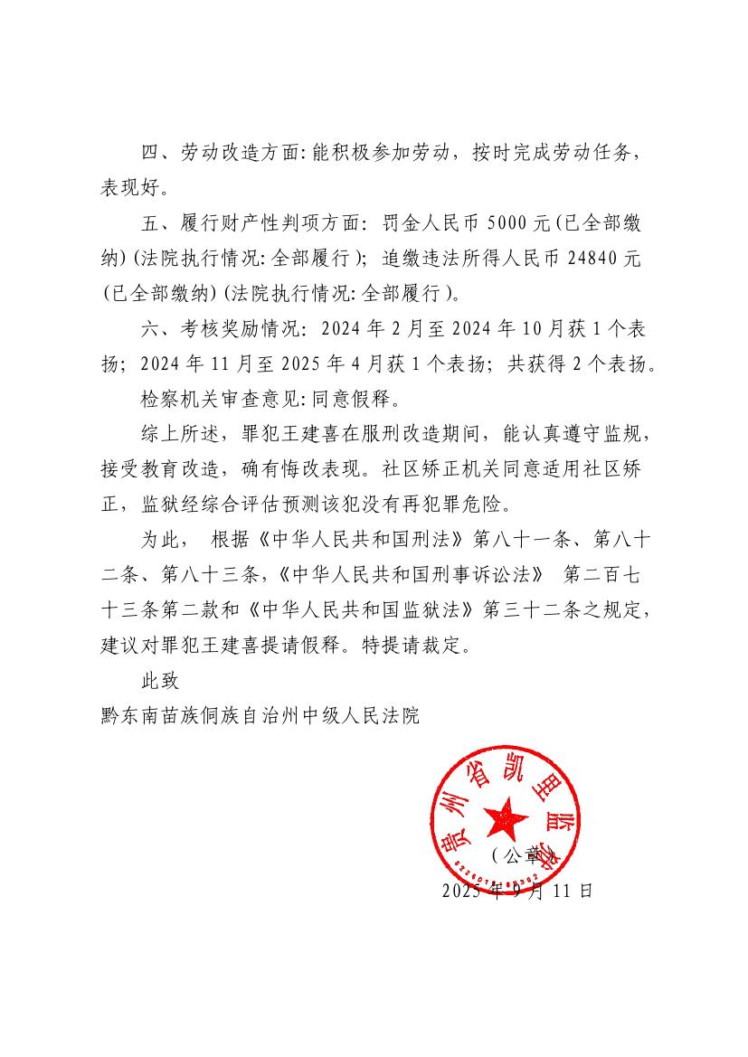提请减刑建议书(2025)黔凯狱假建字第47号-62号