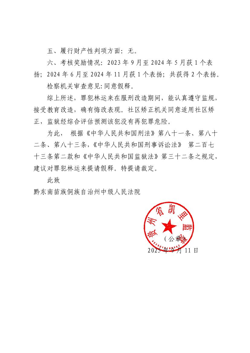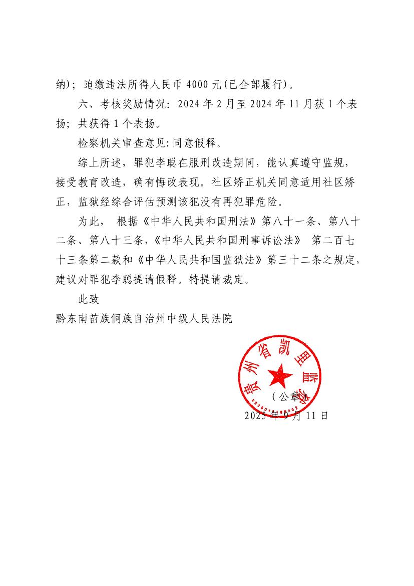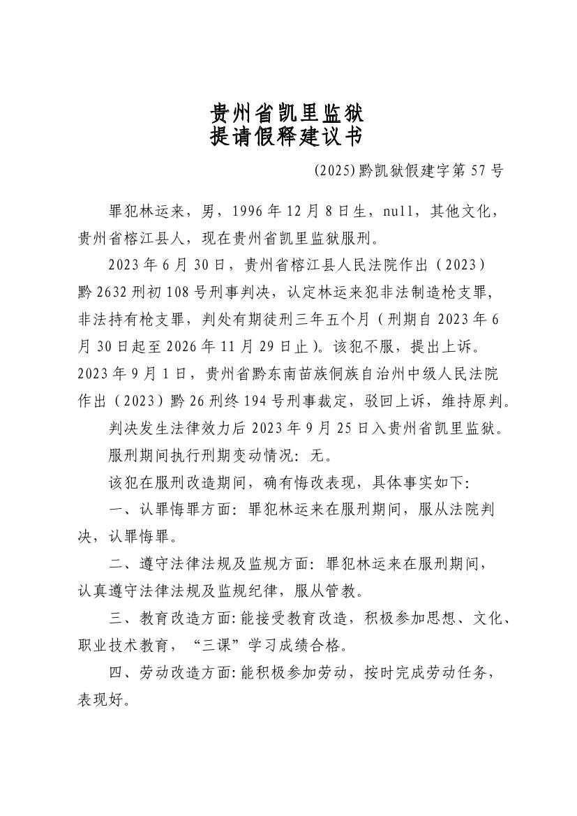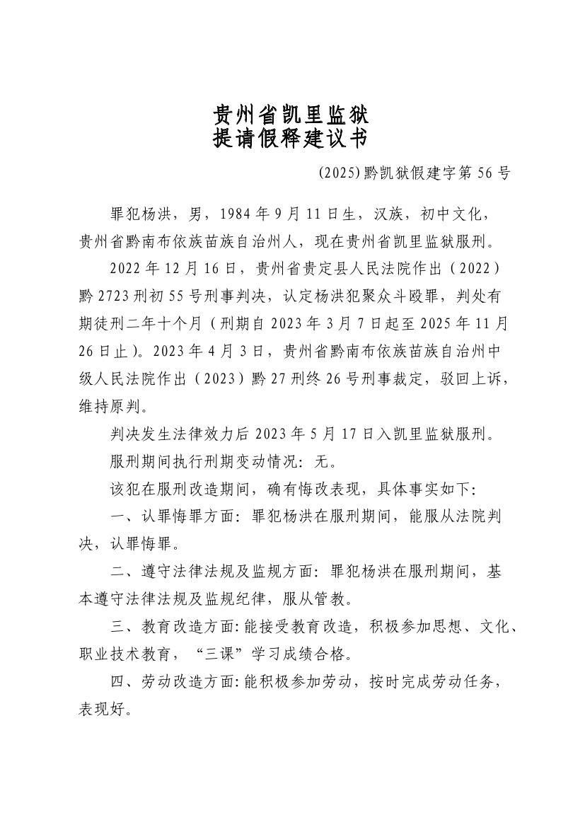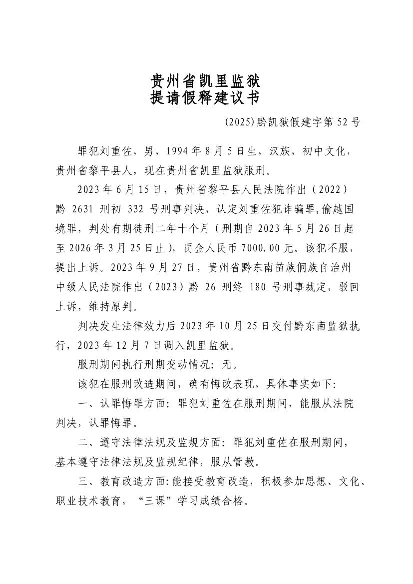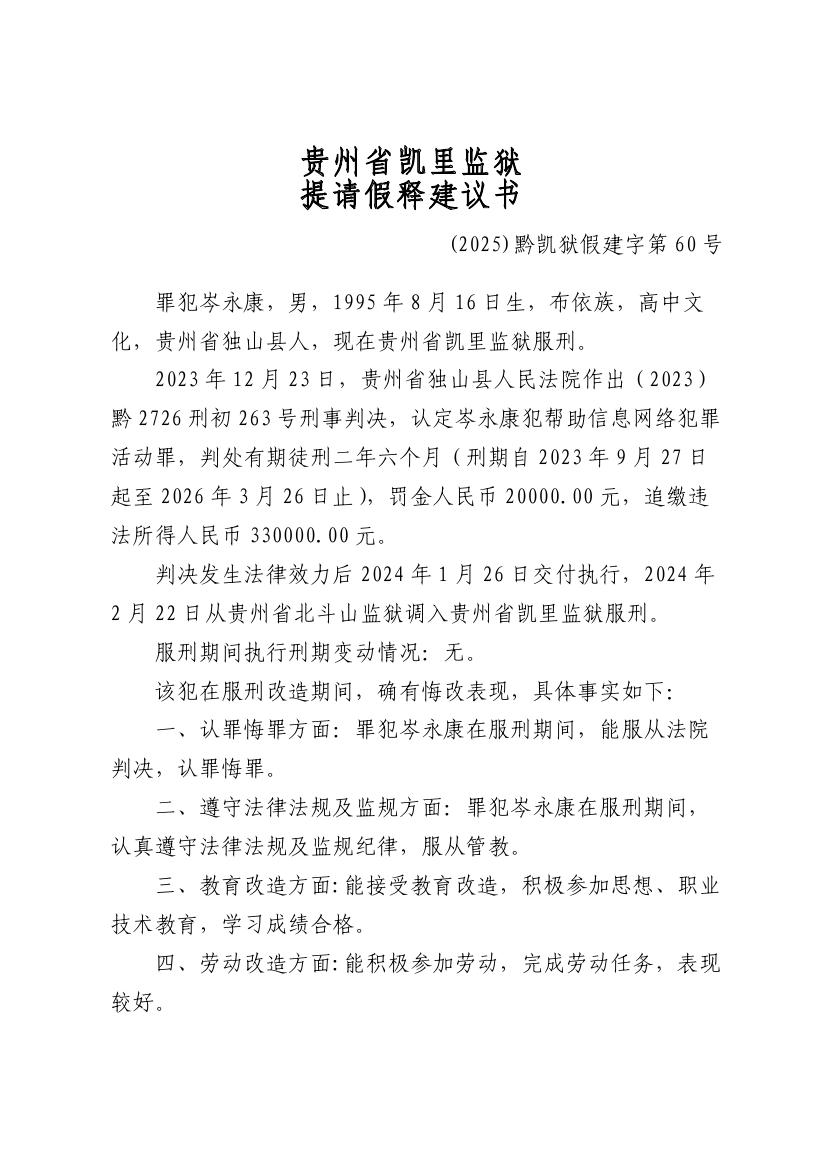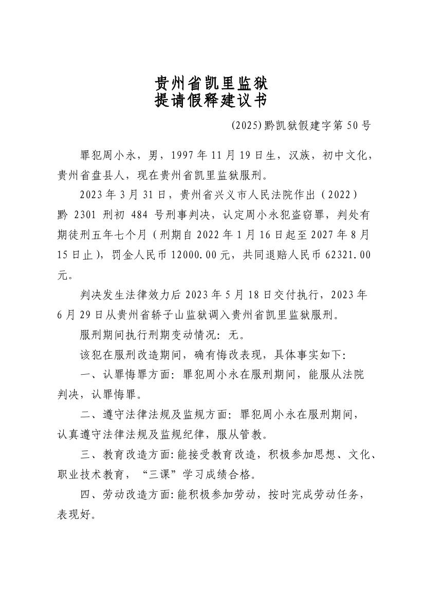 提请减刑建议书(2025)黔凯狱假建字第47号-62号
