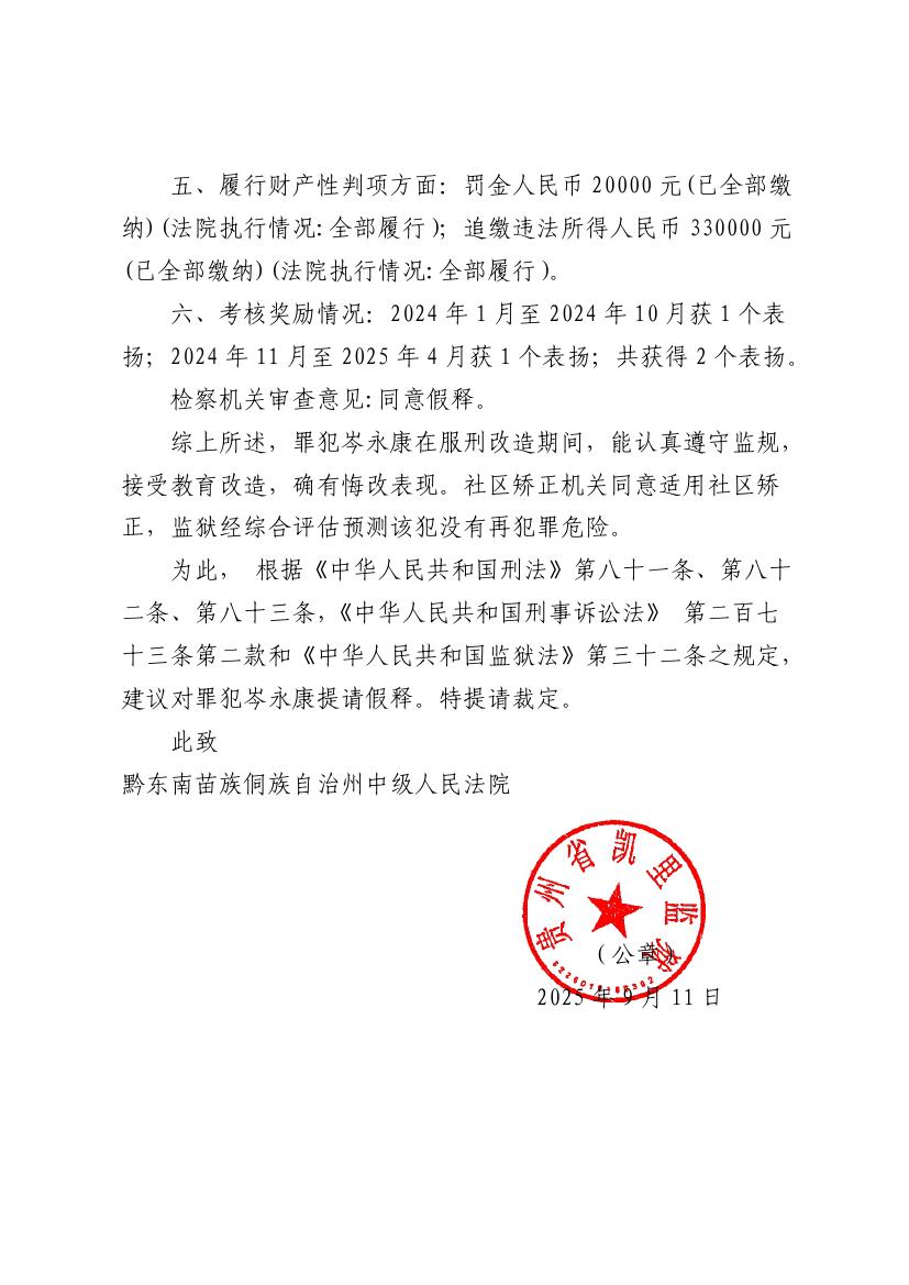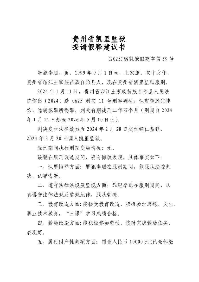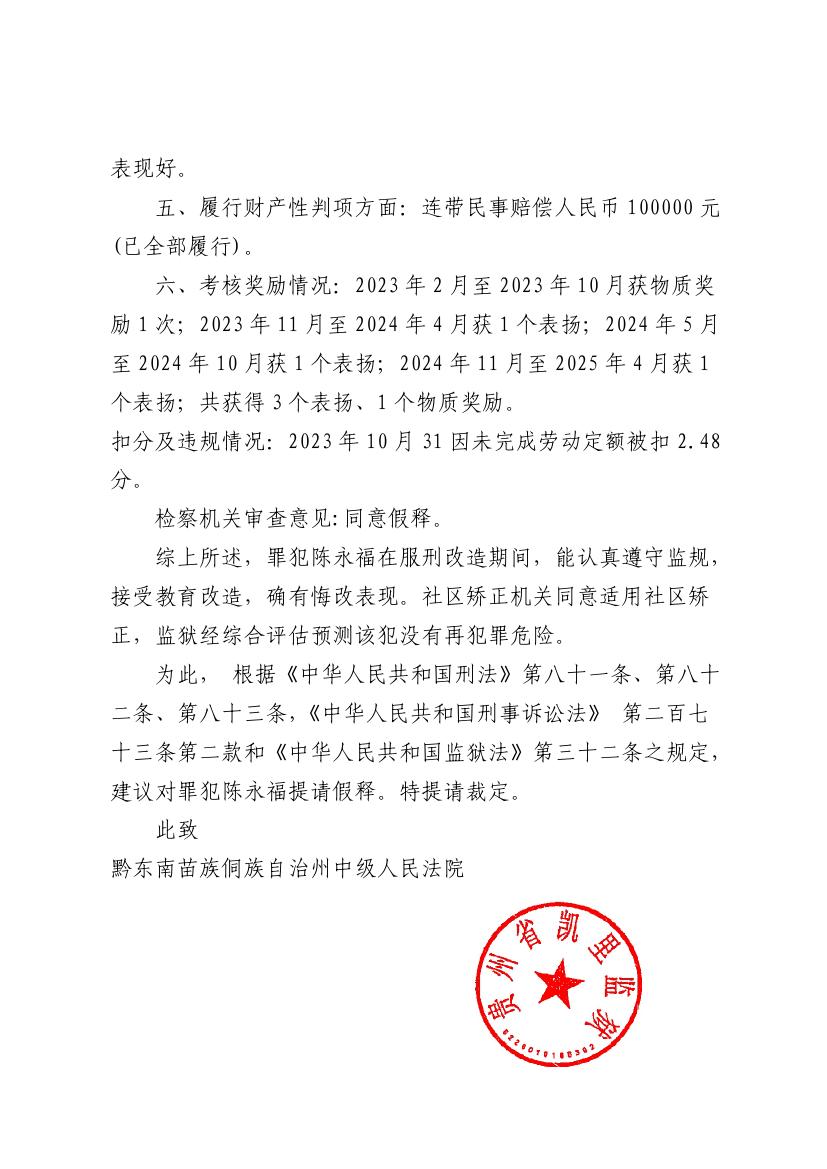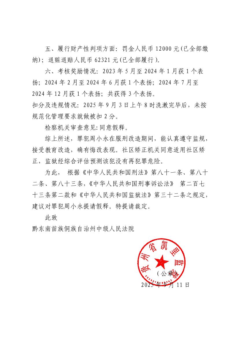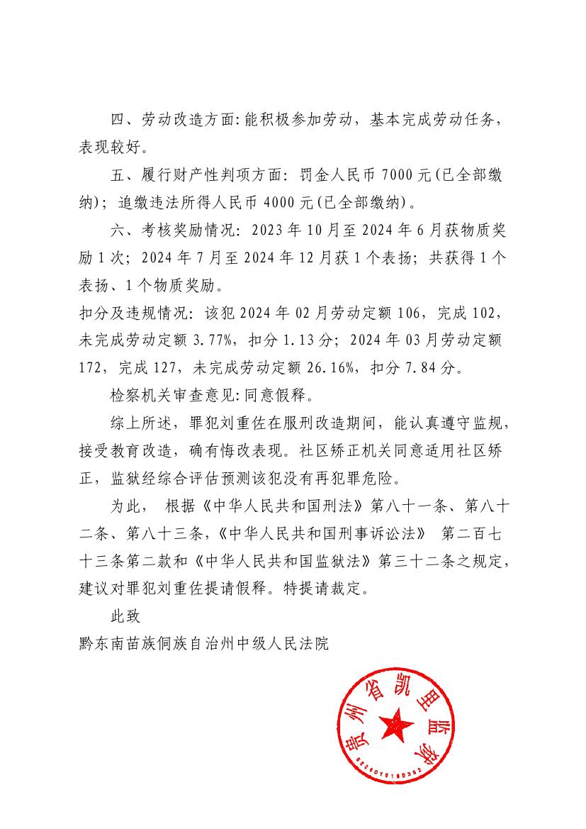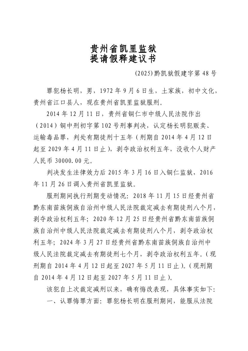 提请减刑建议书(2025)黔凯狱假建字第47号-62号