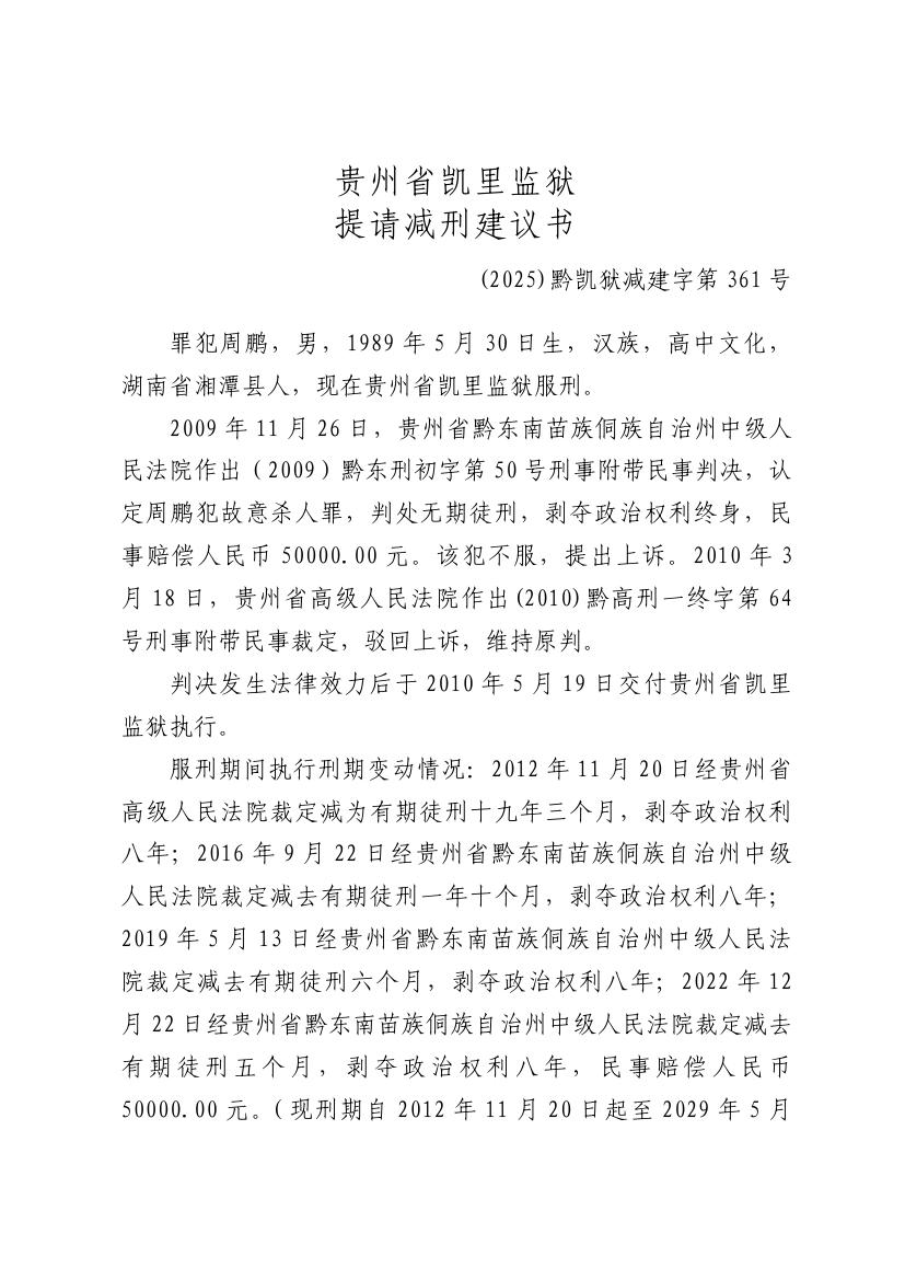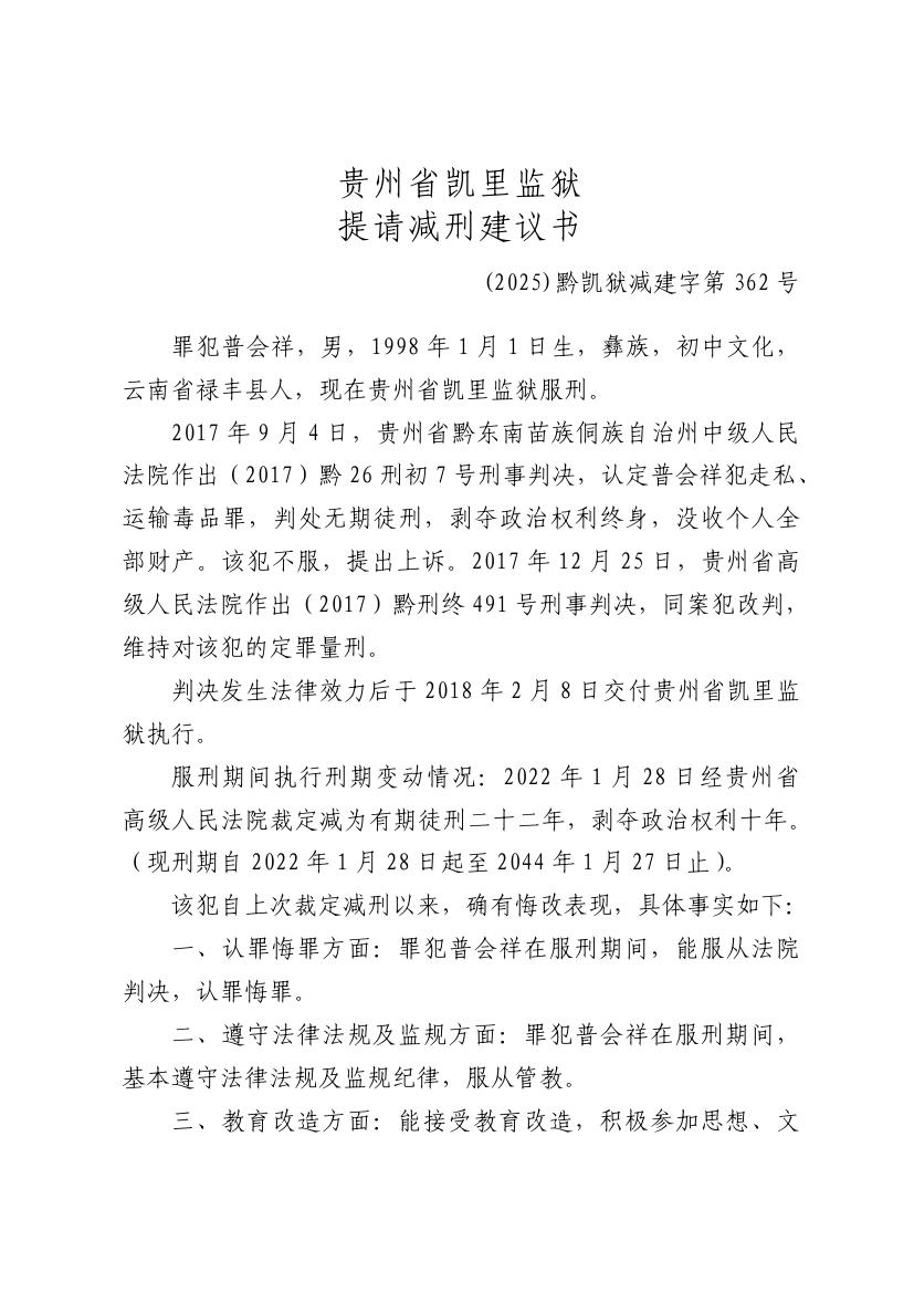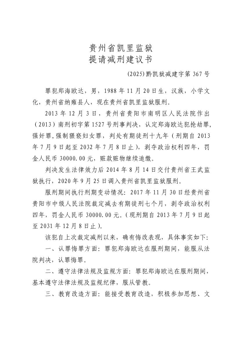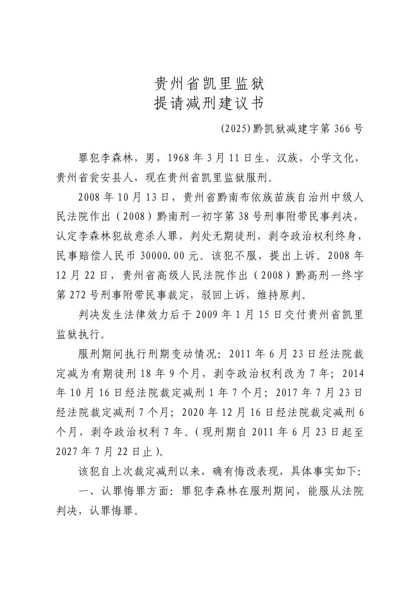 提请减刑建议书(2025)黔凯狱减建字第360—373号