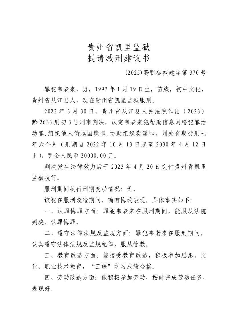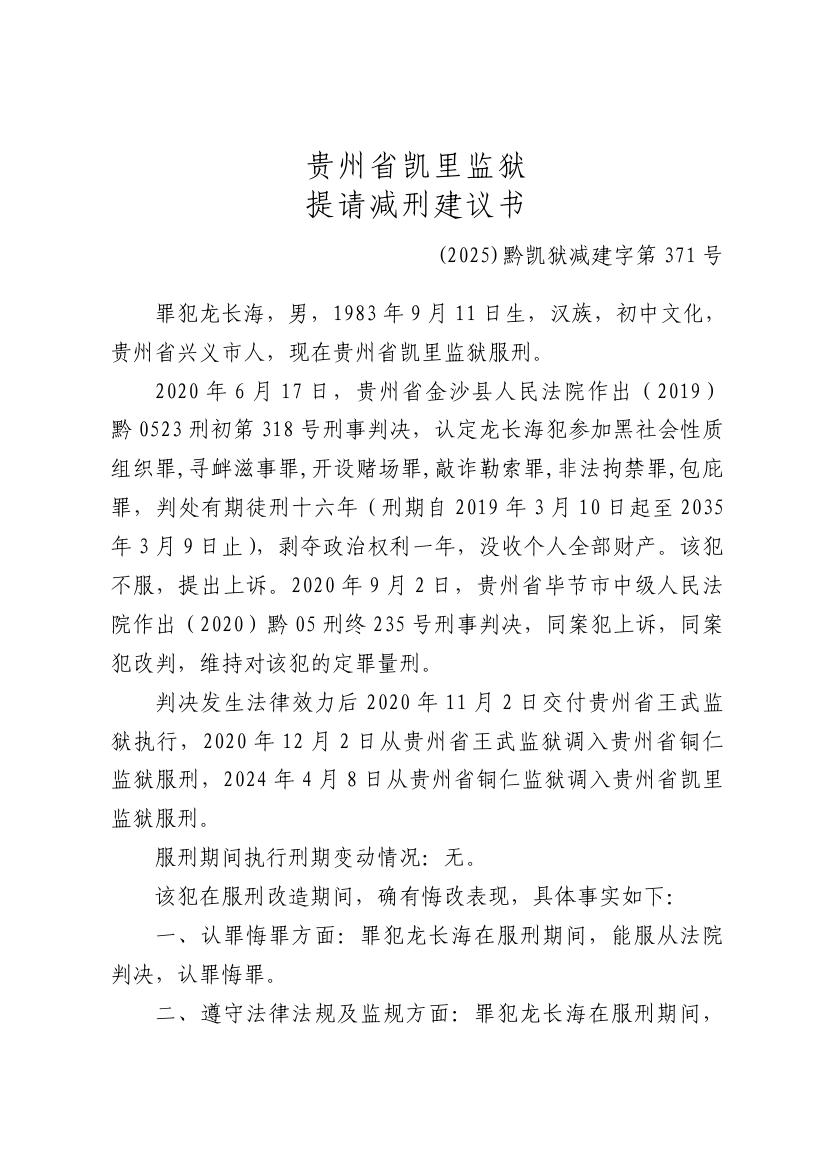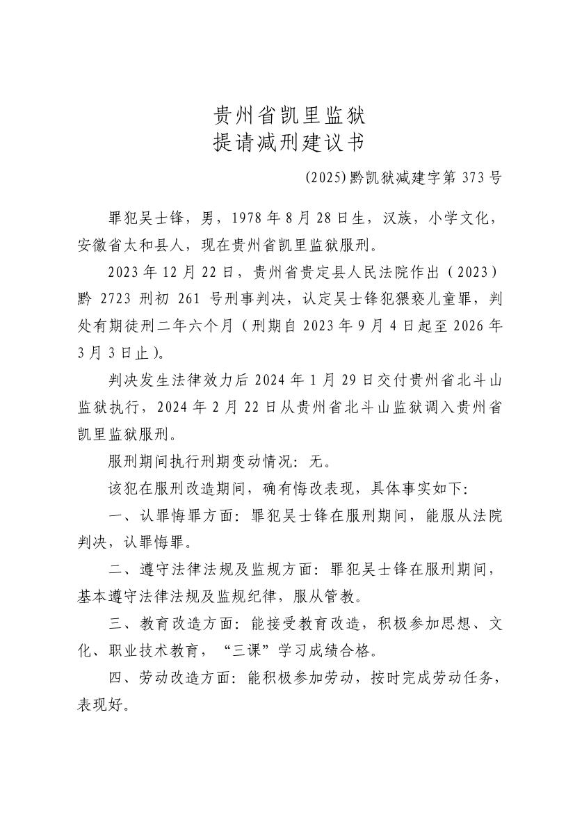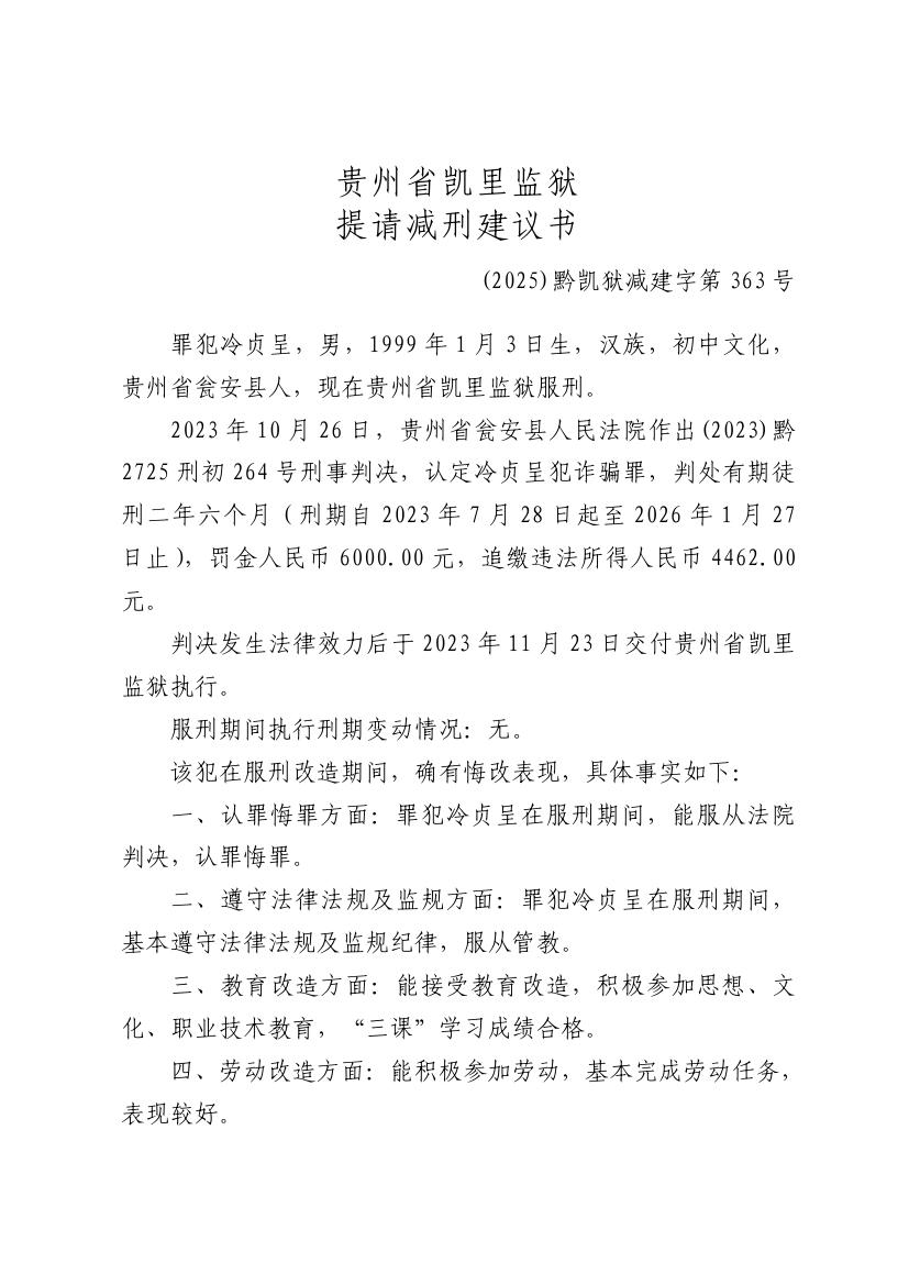 提请减刑建议书(2025)黔凯狱减建字第360—373号