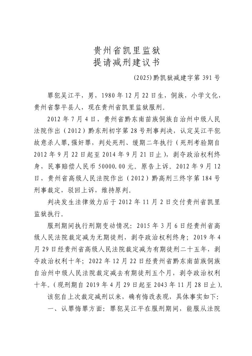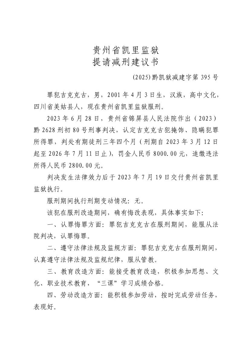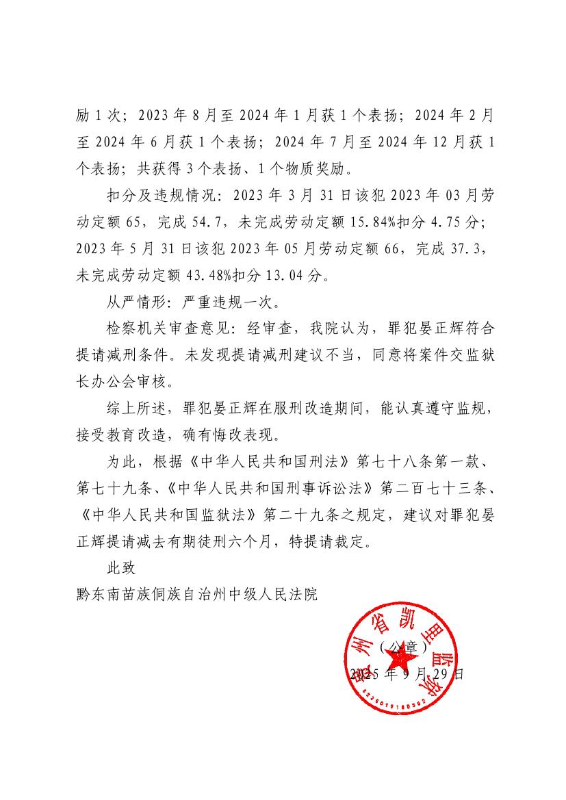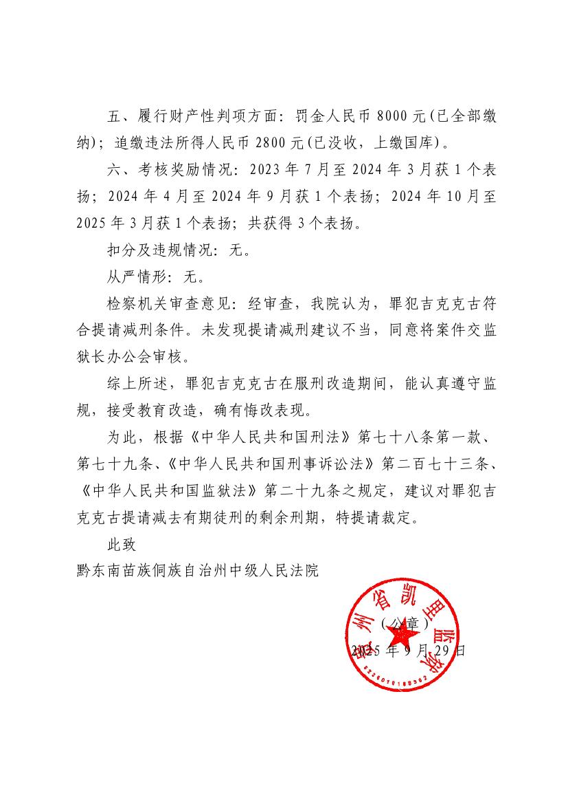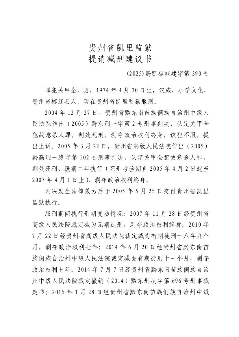 提请减刑建议书(2025)黔凯狱减建字第390—406号