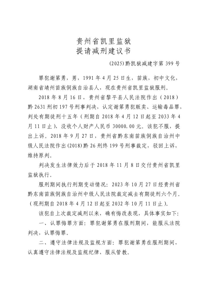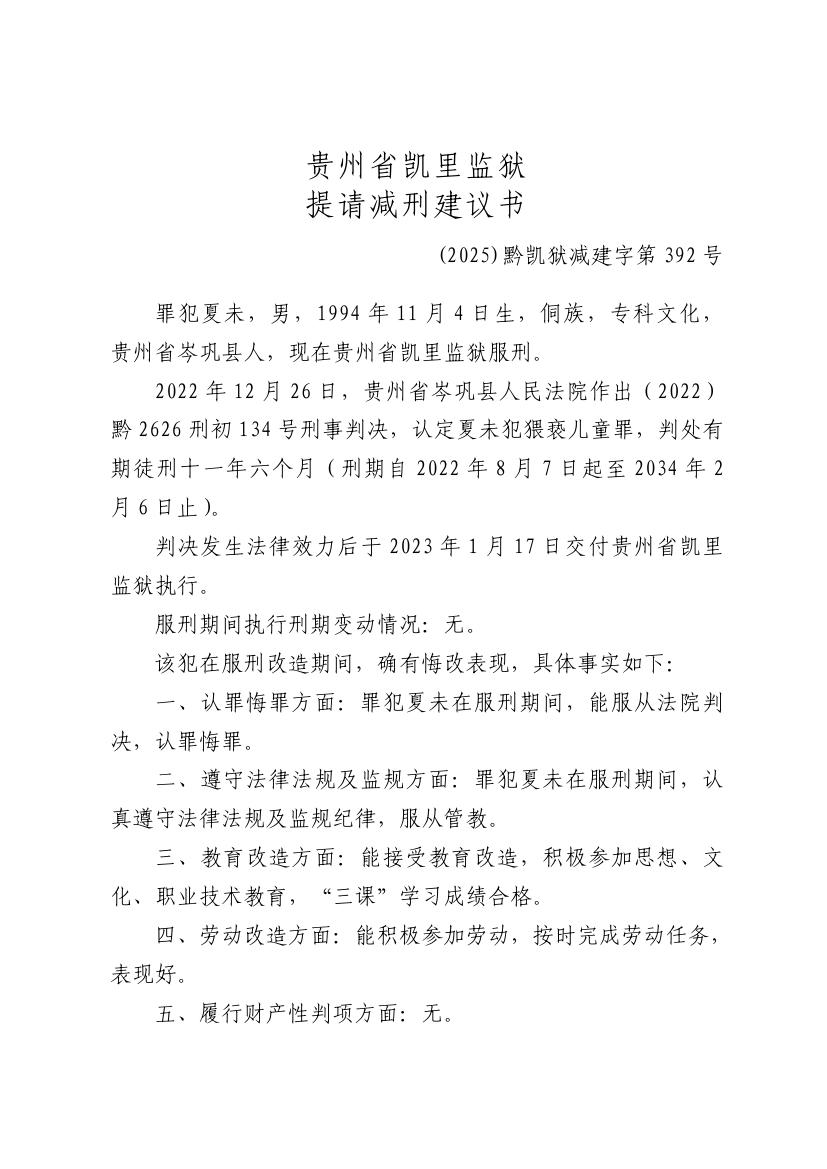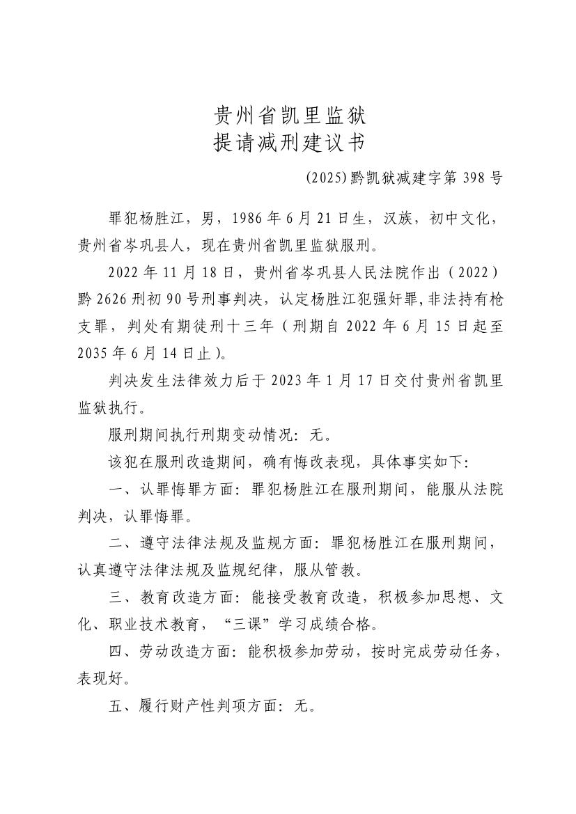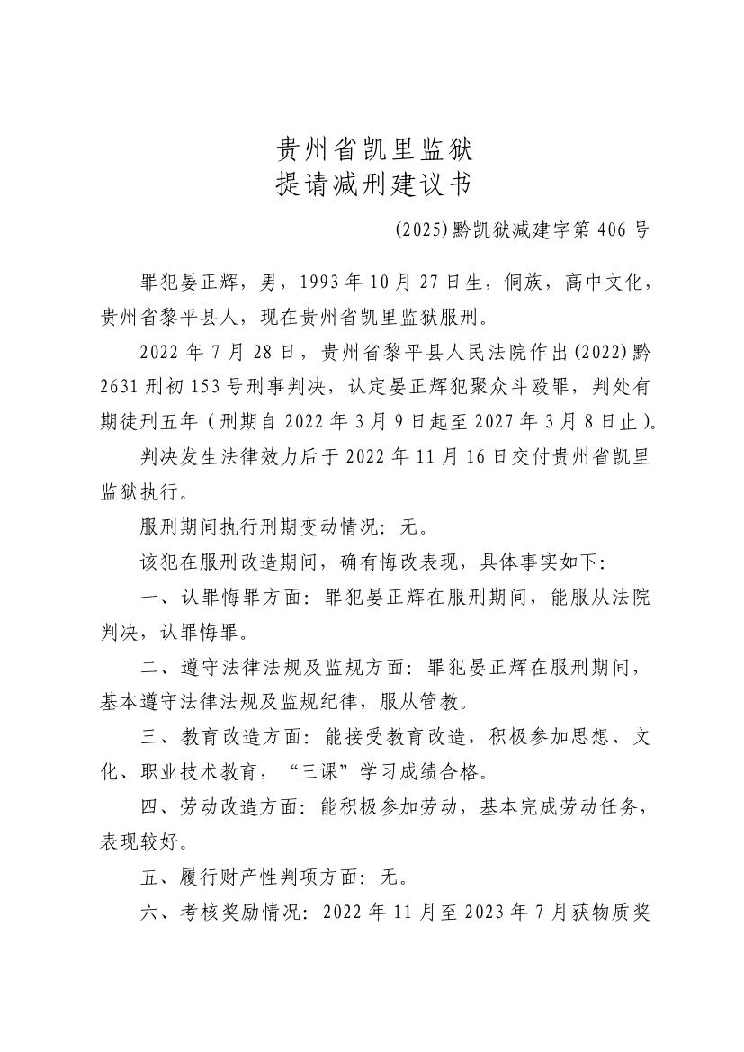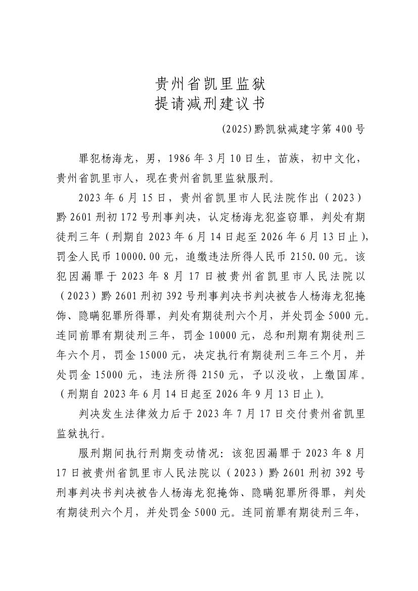 提请减刑建议书(2025)黔凯狱减建字第390—406号