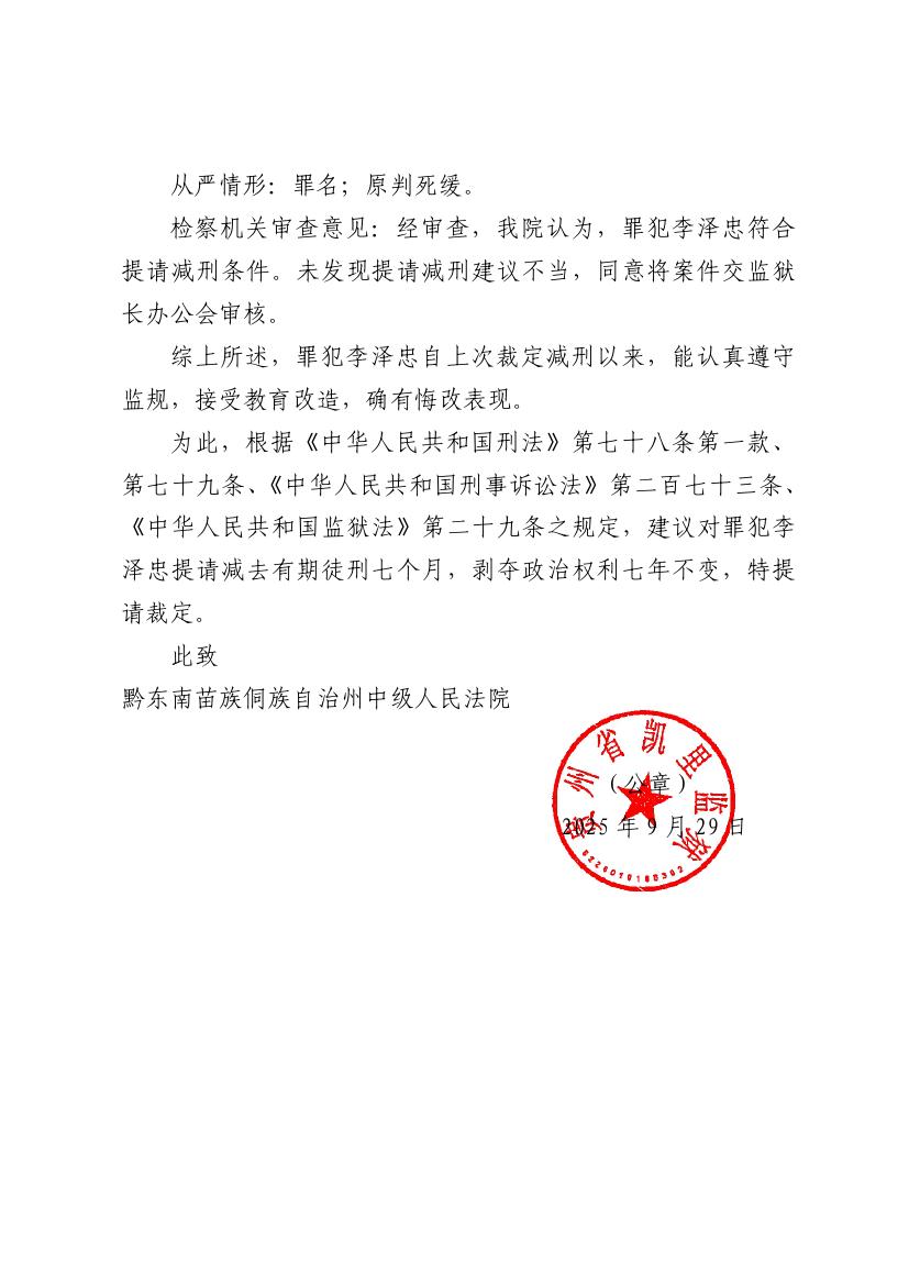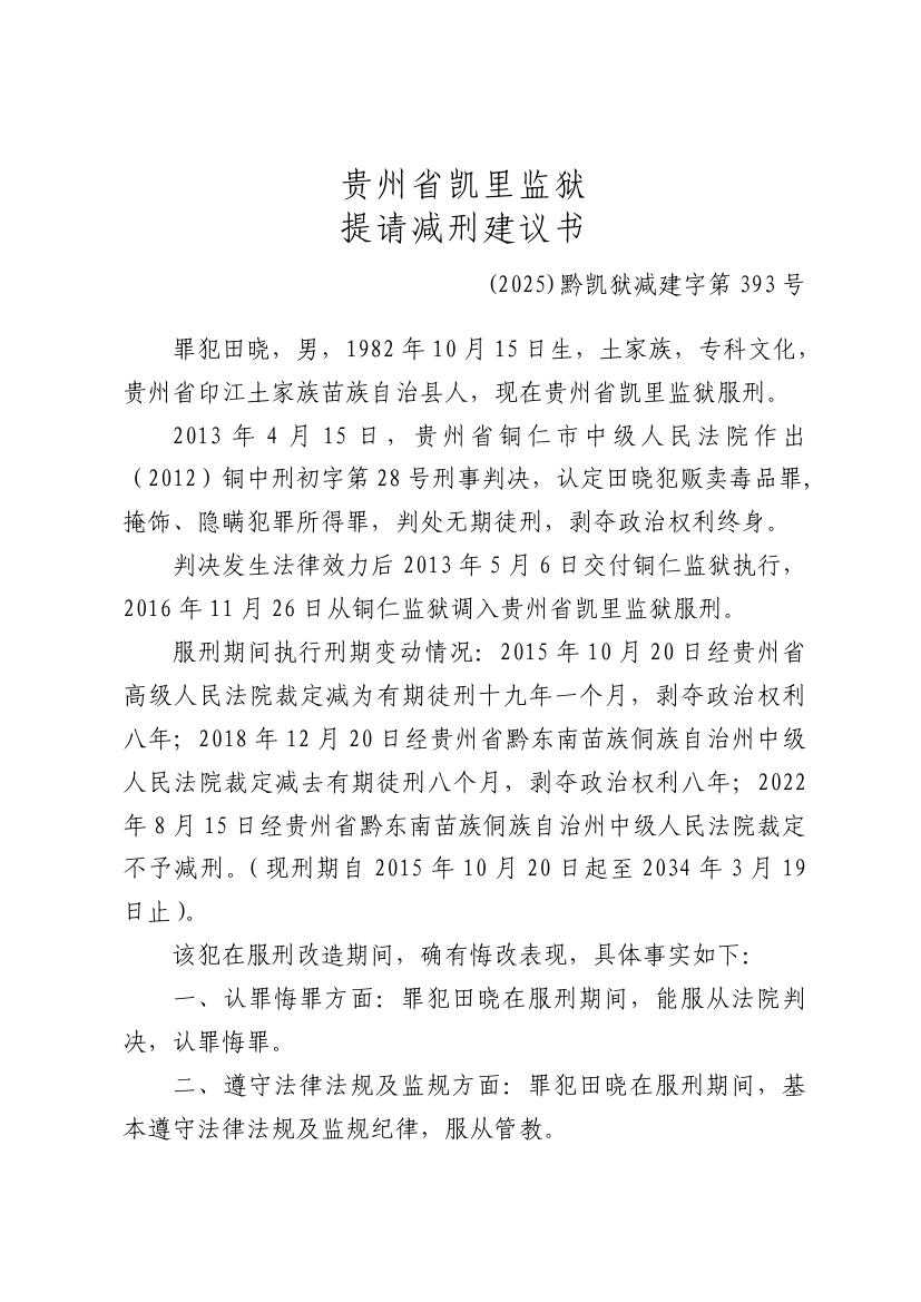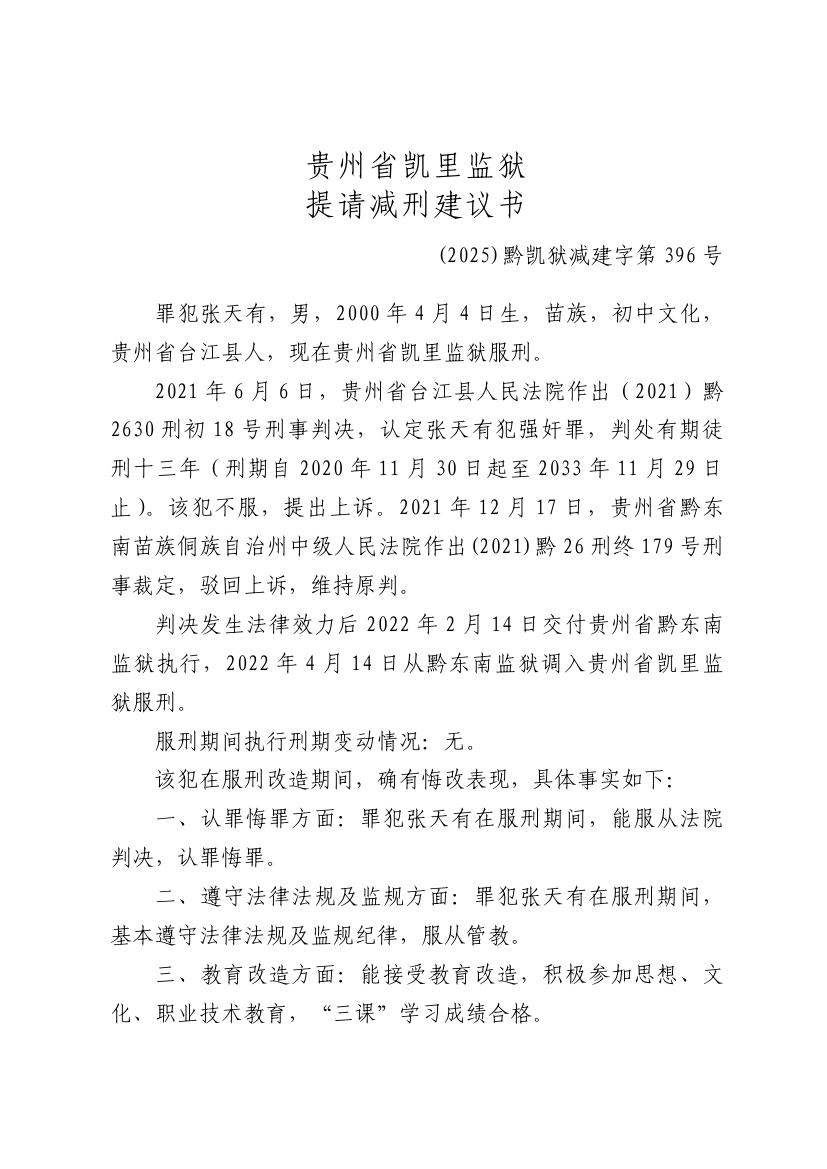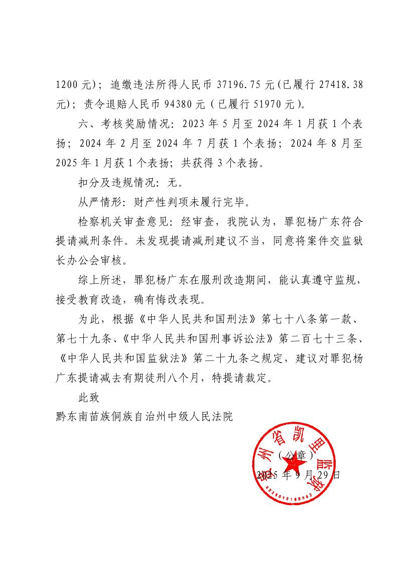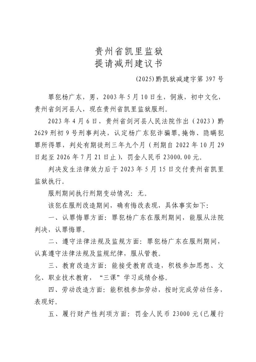提请减刑建议书(2025)黔凯狱减建字第390—406号