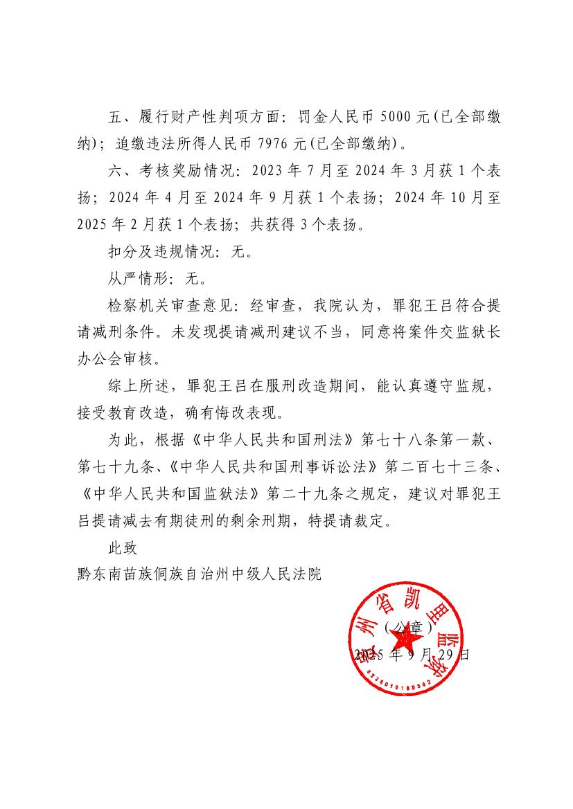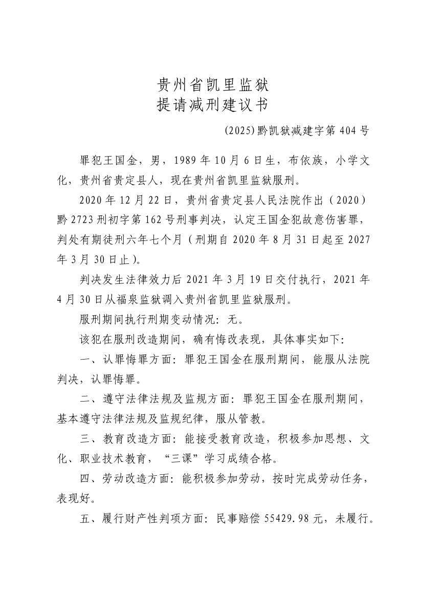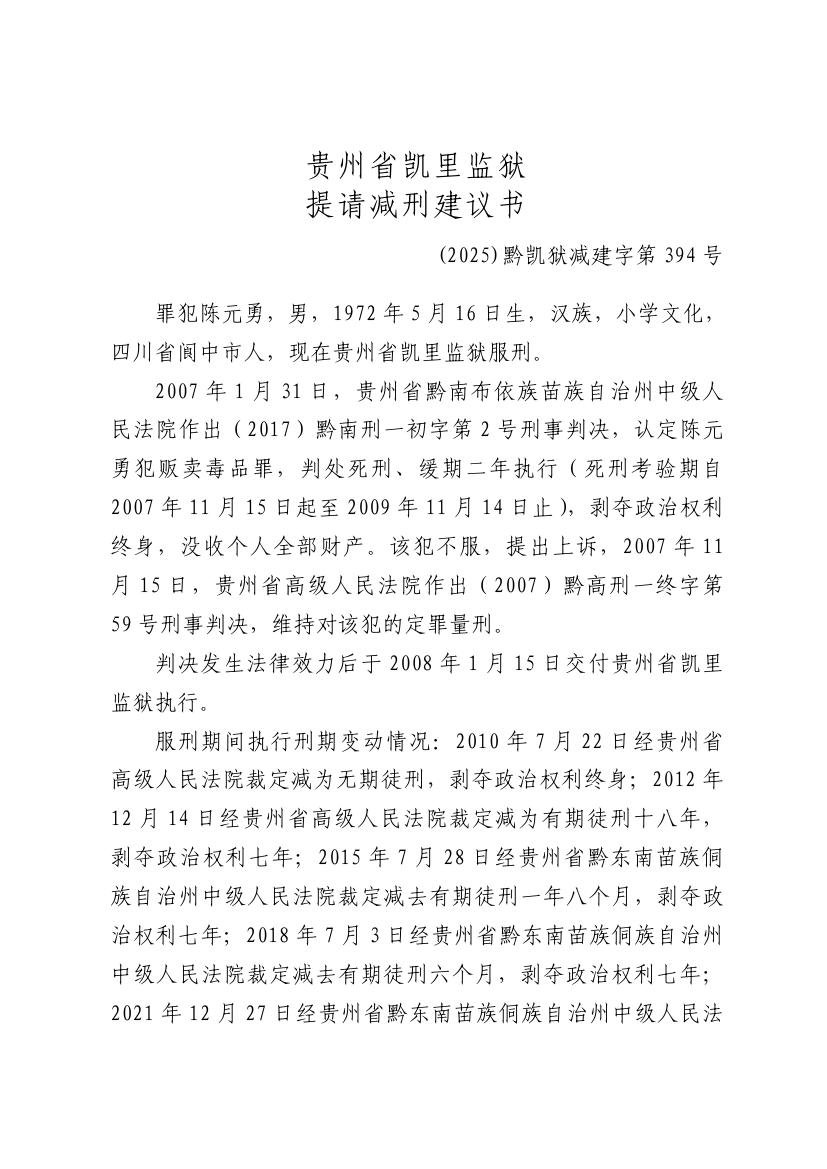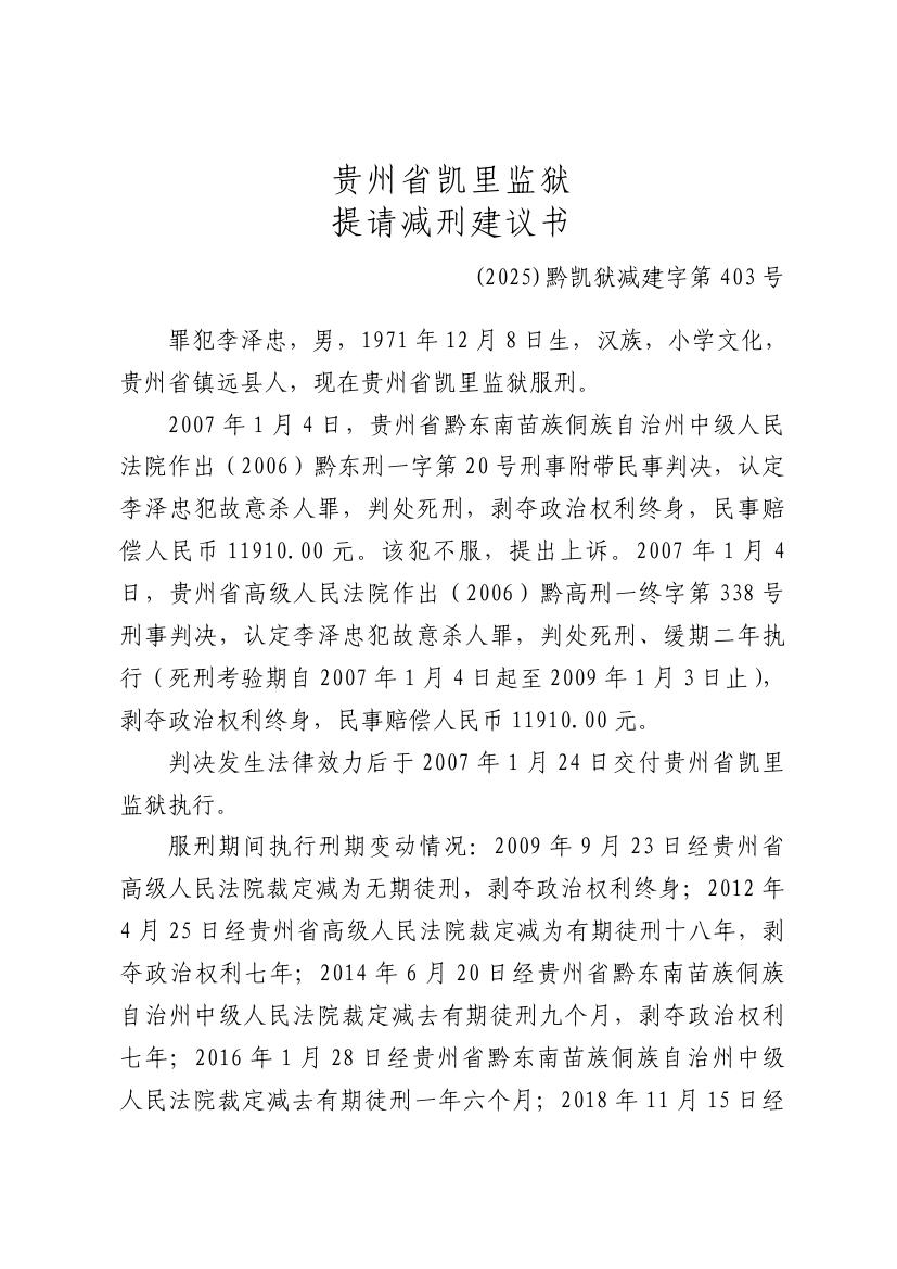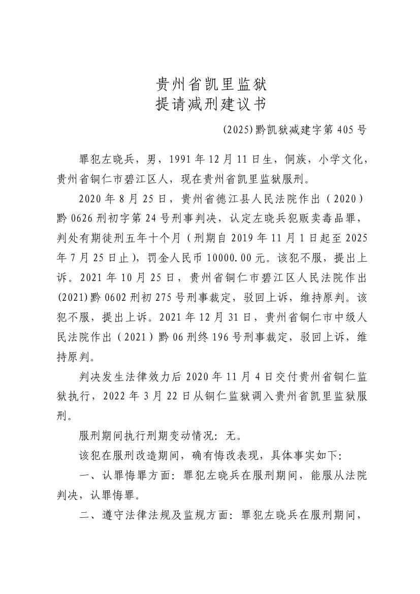 提请减刑建议书(2025)黔凯狱减建字第390—406号