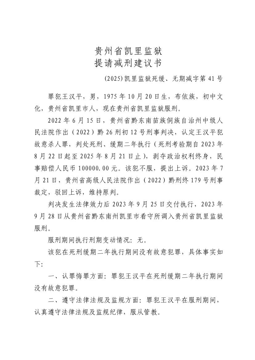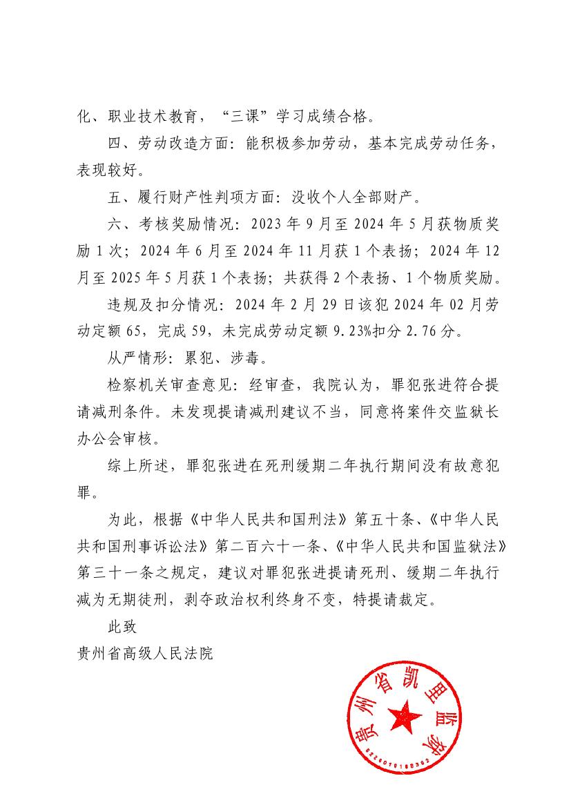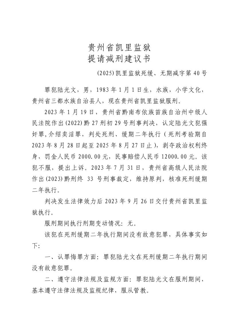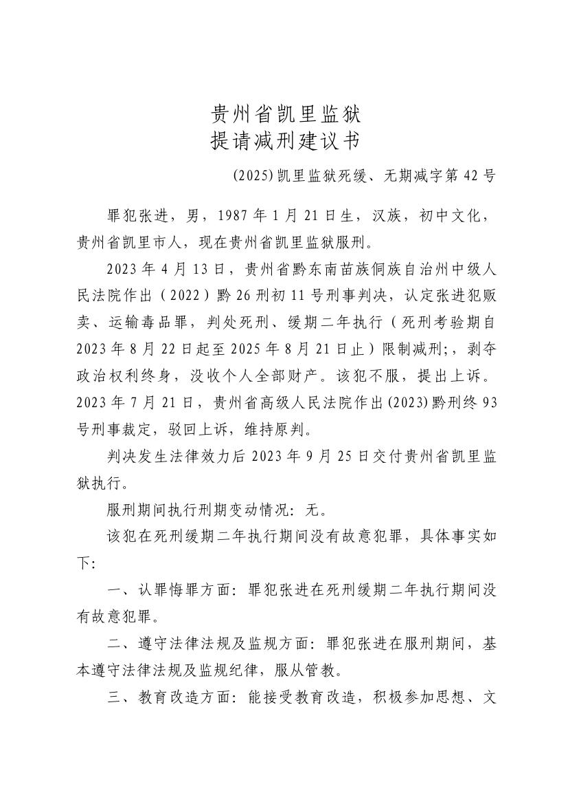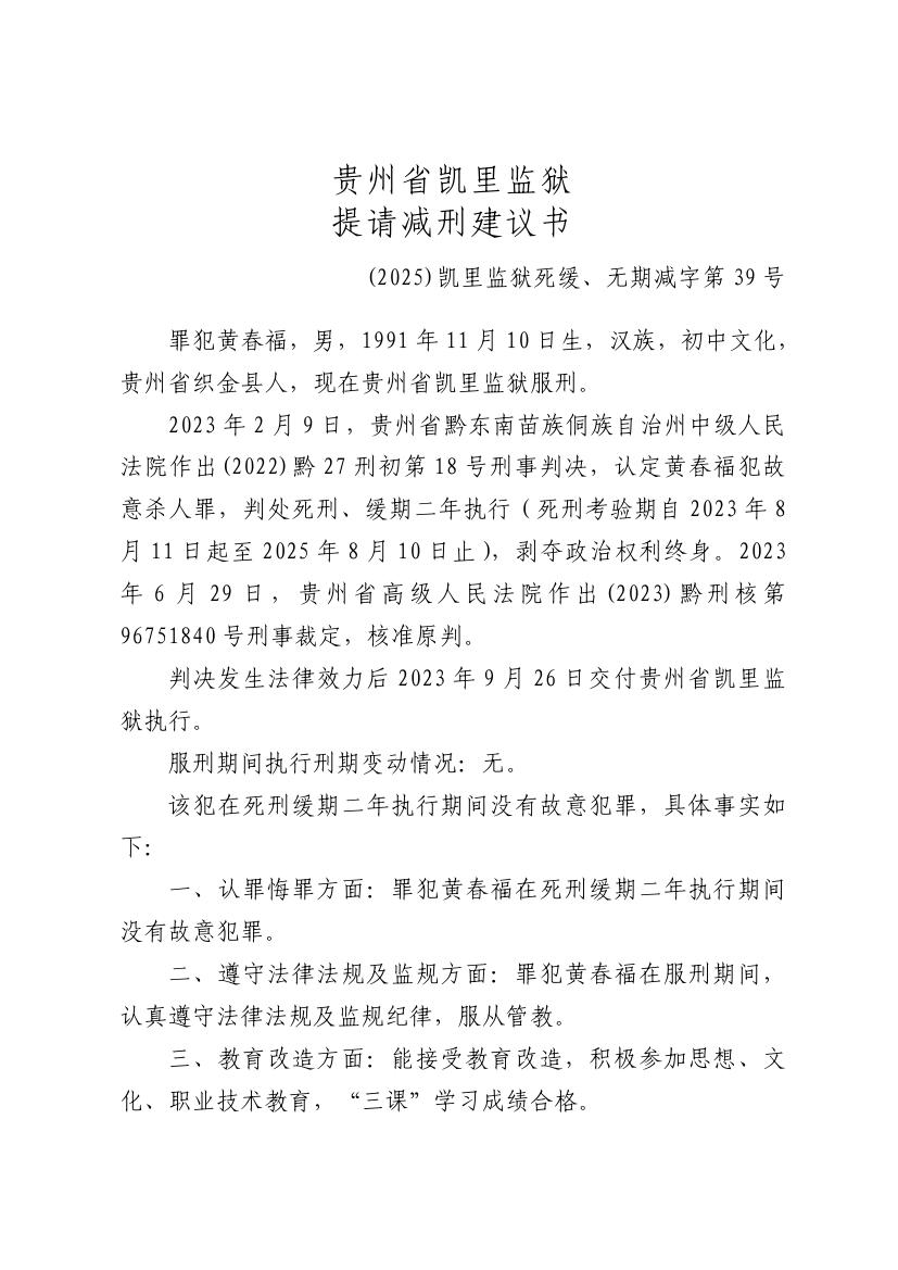 提请减刑建议书(2025)凯里监狱死缓、无期减字第39-42号