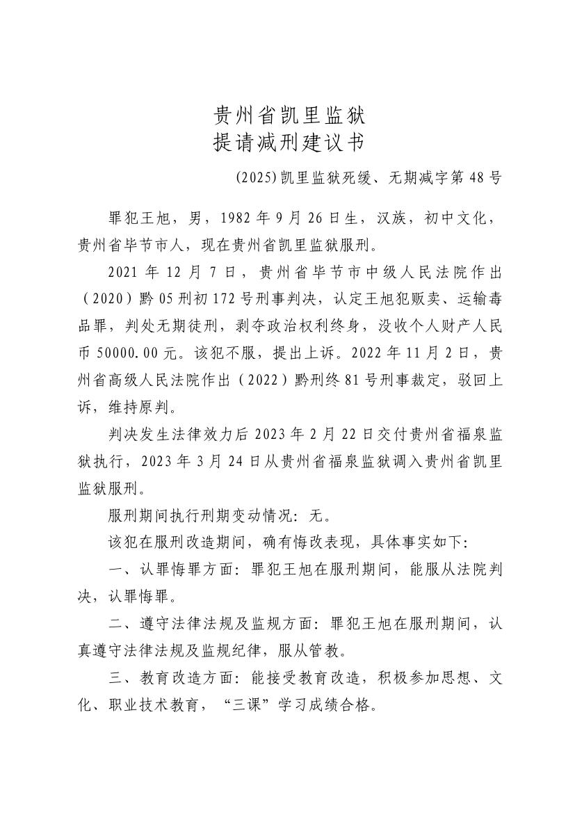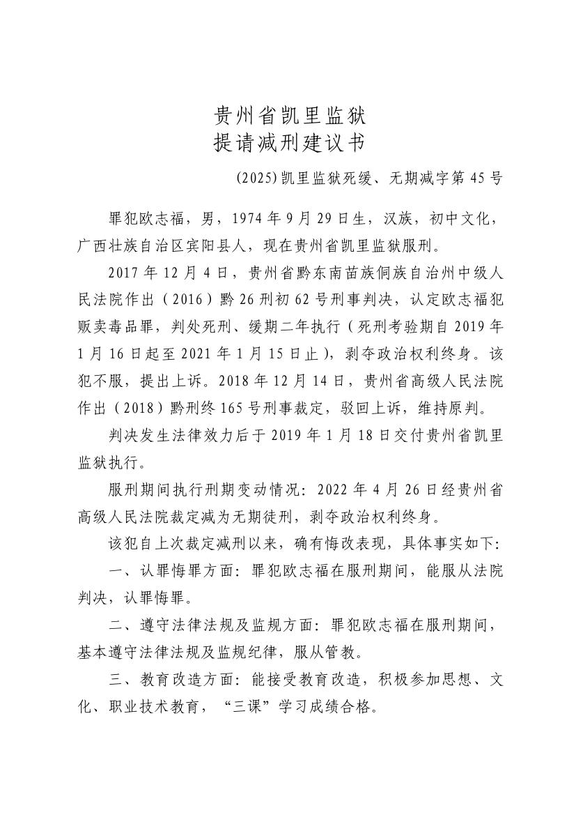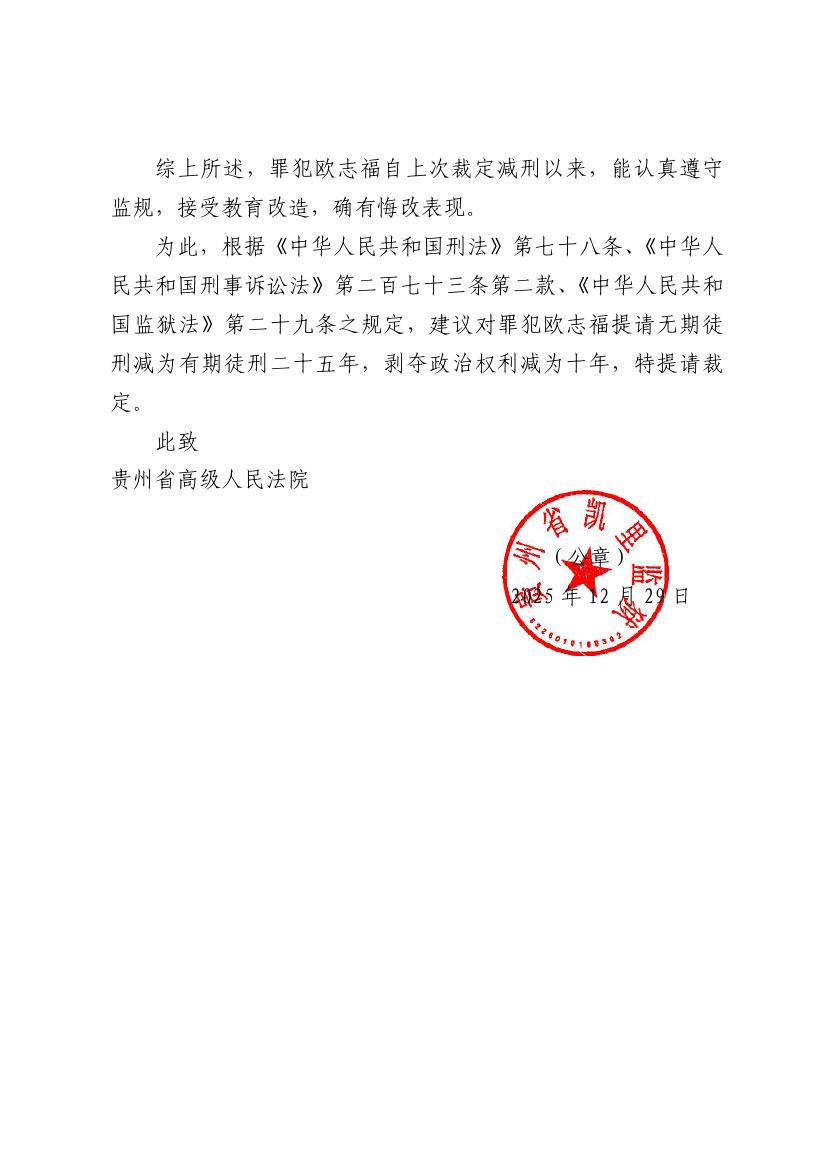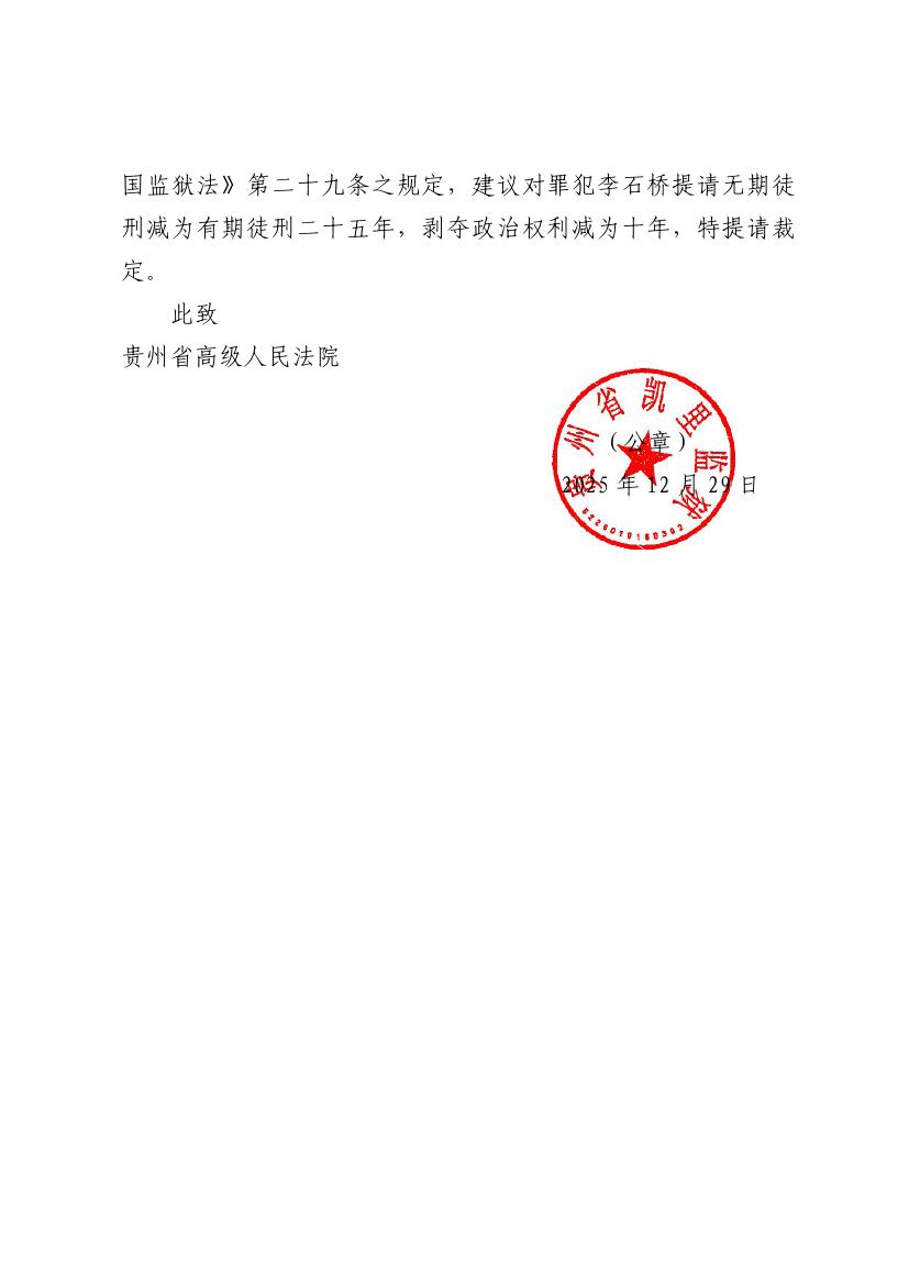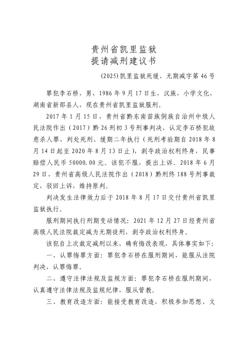提请减刑建议书(2025)凯里监狱死缓、无期减字第43-50号