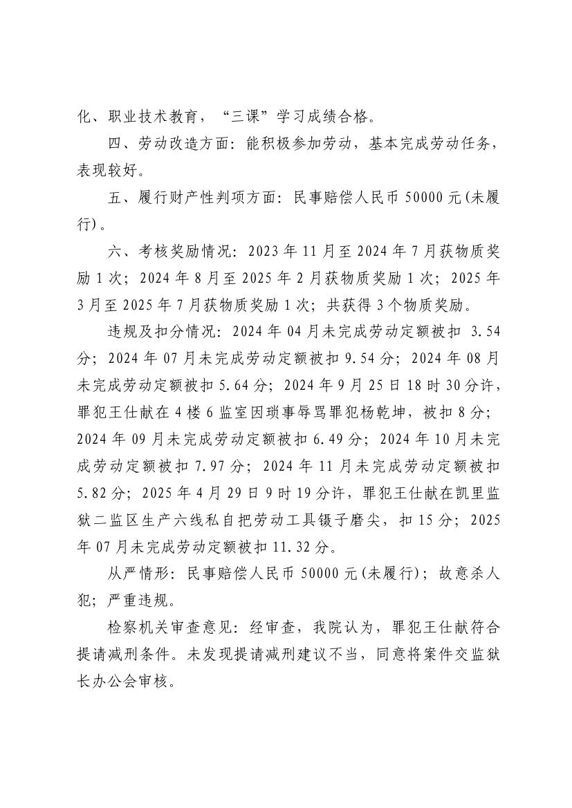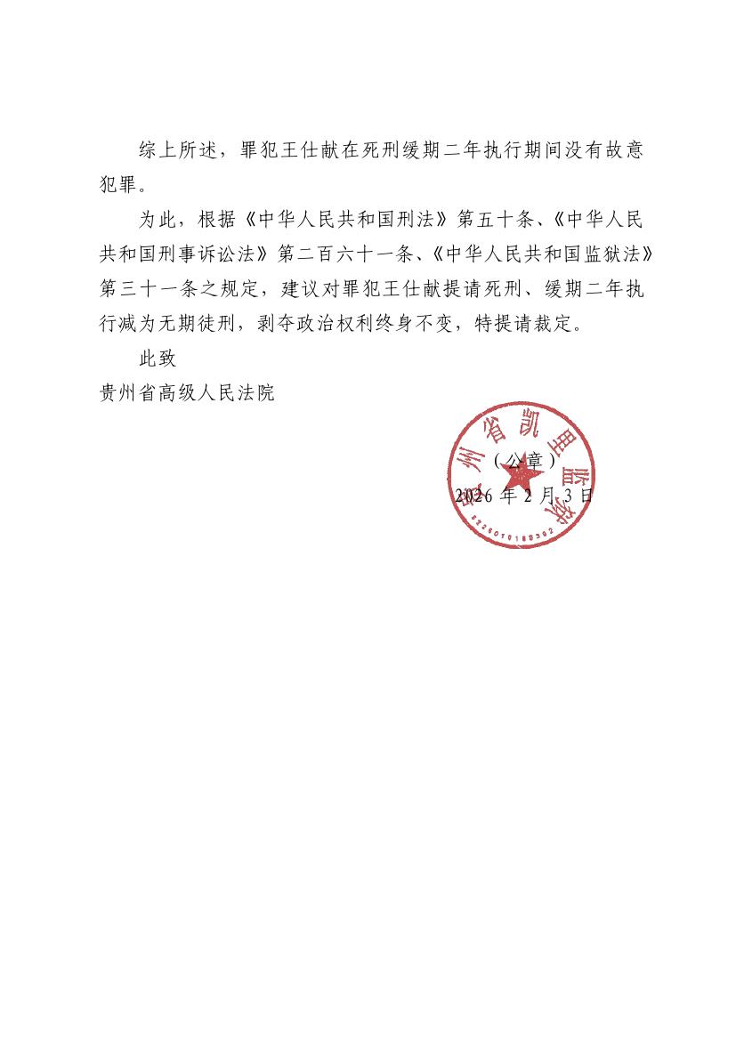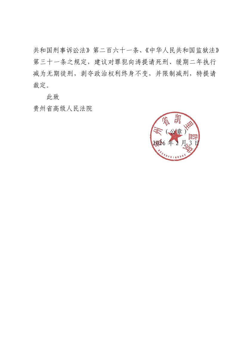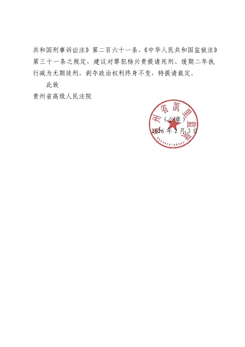 提请减刑建议书(2026)凯里监狱死缓、无期减字第1-4号