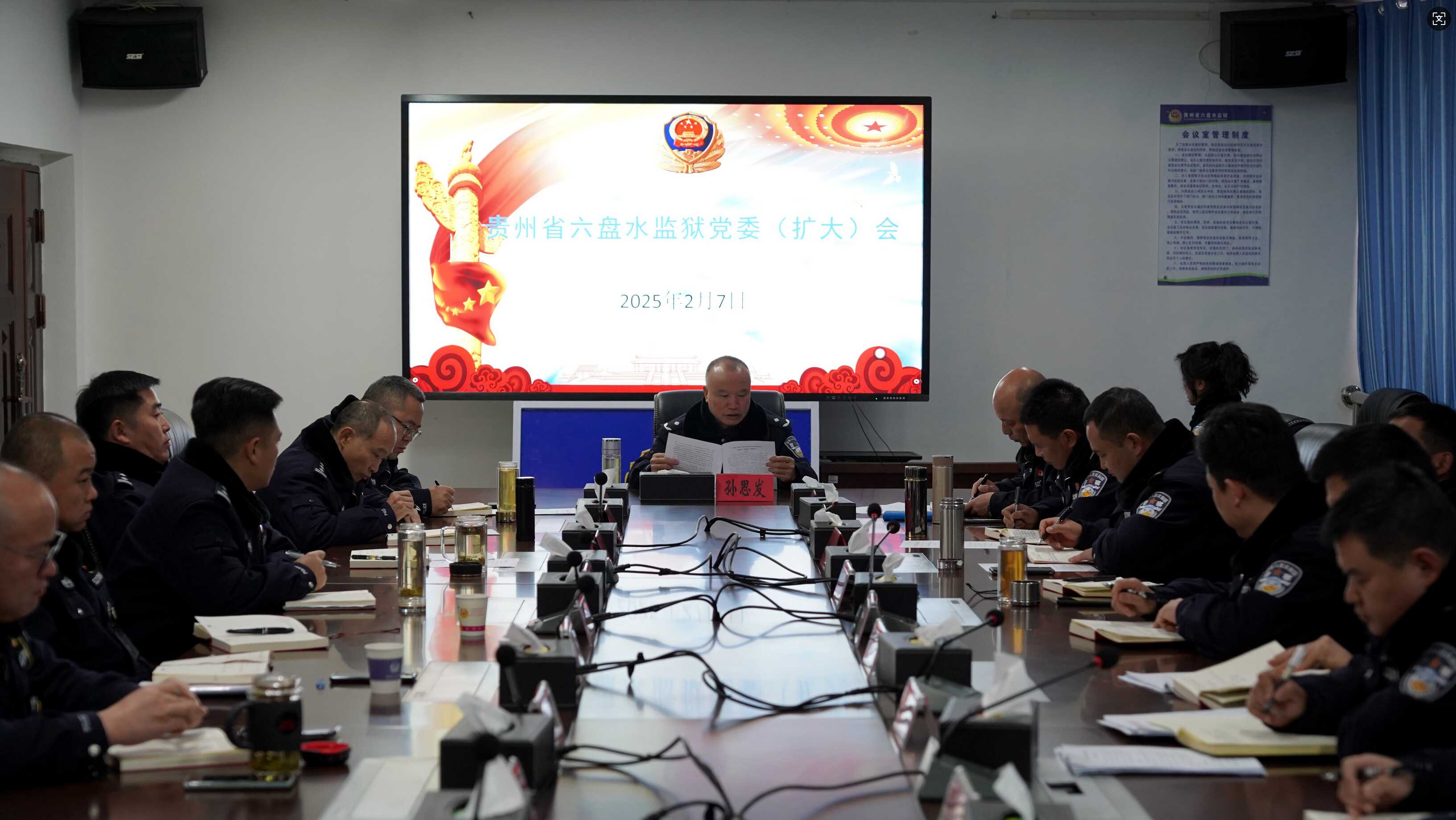 2月7日,六盘水监狱召开党委(扩大)会暨春节假期后收心会,会议扩大至各党支部书记、各部门负责人、监区长及教导员。党委书记、监狱长孙思发主持会议。