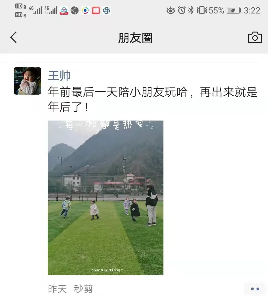 这是民警王帅年前最后一次陪孩子踢球时发的朋友圈,不能陪着孩子过除夕他也很遗憾,但是组织比家庭更需要他,所以他义无反顾的来了。