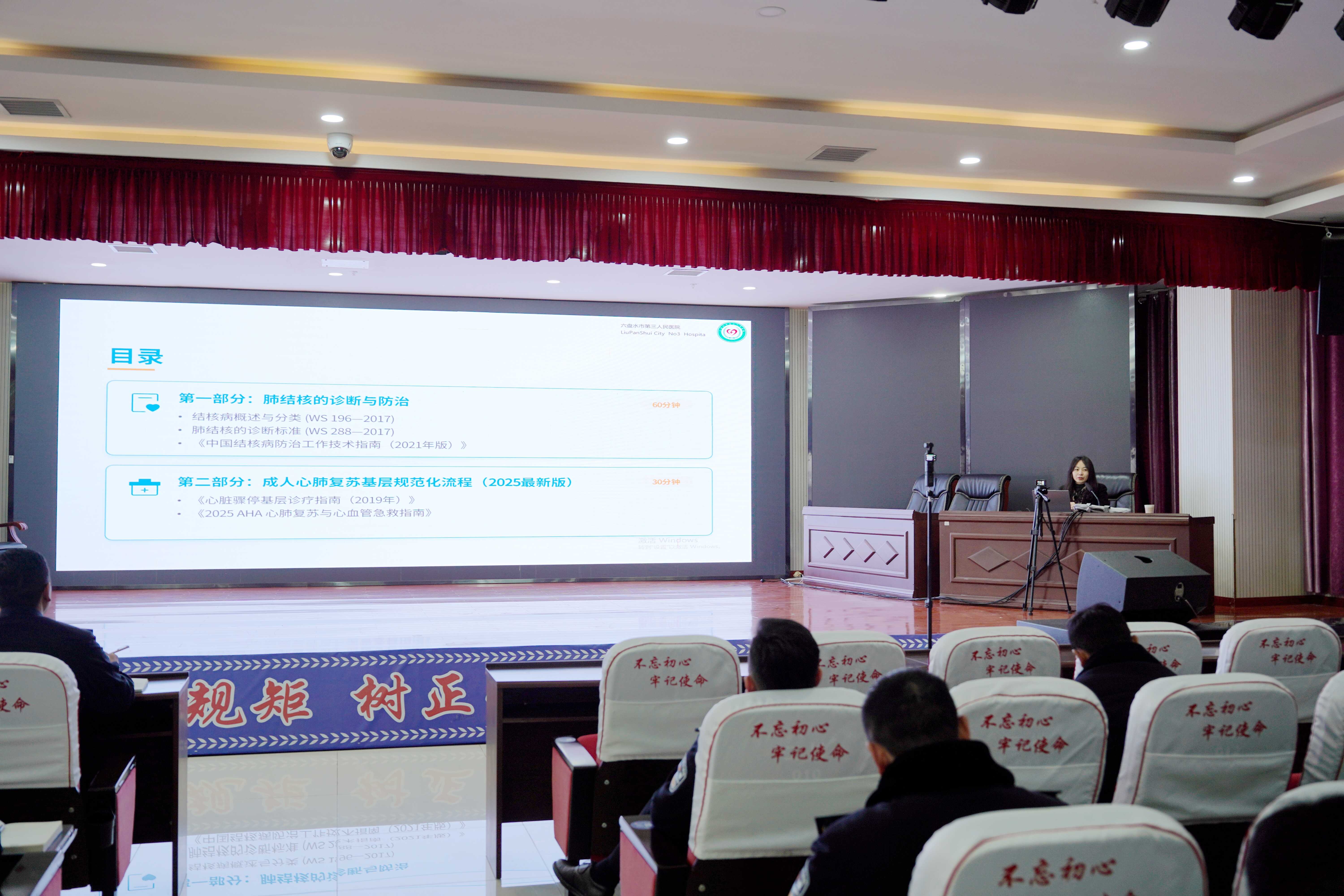 为深入推进全警实战大练兵工作,筑牢监狱公共卫生安全防线,提升医护人员与一线民警结核病规范化诊疗及应急抢救水平,3月16日,六盘水监狱特邀六盘水市第三人民医院感染科李一鸣主任医师,开展结核病防治与急救技能综合培训,除值班、执勤外全体民警参训。