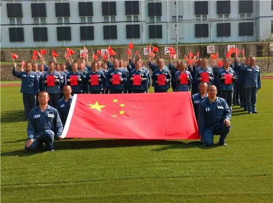 对祖国爱国情怀的表达方式很多,有人会选择通过唱红歌,也有人会选择摆设人体造形图案的形式来表达对祖国的热爱。国庆期间,五监区罪犯在民警的有序组织下,来到狱内足球场上,他们列队站成一个方正图形,喊出“祝祖国明天更美好”等祝福语,挥舞着手中的国旗,饱含深情的共唱《歌唱祖国》,用最美的歌声共同表达对祖国的热爱,祝福祖国更加繁荣昌盛!他们的歌声深深地感染了现场所有的罪犯,在内心深处产生强烈共鸣。同时,他们还在足球场开展“摆设人体造形”图案活动,活动中,罪犯们个个精神饱满,团结协作的围成一个圆圈,在圈内蹲坐形成“十一”字样,并用四人保护着鲜艳的五星红旗共同形成一个特殊图案,来展示爱国之情和对祖国母亲的美好祝愿。
