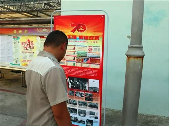 高墙内,一幅幅书画以及多彩的图文展板,也在展示着罪犯对祖国最深情的告白。在国庆节,监区组织罪犯开展书画创作和观多彩图文展板活动,他们的书画既有对祖国大好河山的赞美,又有对美好生活的歌咏,充分表达了广大罪犯对未来生活的美好向往以及对坚定服刑改造的信心和决心。四监区罪犯裴某在活动中说:“刚入狱时,我根本不知如何面对,整天以泪洗面,多亏警官为我搭建了书画平台,备了画笔和纸墨,教导我静下心来学习画画。坚持一两年下来,我重新找回了自我。”如今,每当监狱开展书画比赛,裴某都会参加,他还告诉我们,想借这次国庆书画活动的机会,用手中的画笔向祖国献上一份自己的改造成果。另外,在9月30日下午,监狱还开展了“中华人民共和国成立70周年成就展”和“狱园活动展”,用图文展板的方式向罪犯展示了新中国成立以来,特别是党的十八大以来,在以习近平同志为核心的党中央领导下,全国各族人民不忘初心、牢记使命,团结奋斗、不懈努力,取得一个又一个辉煌成就的伟大历程,进一步激发了罪犯的爱国热情和报效祖国的斗志。