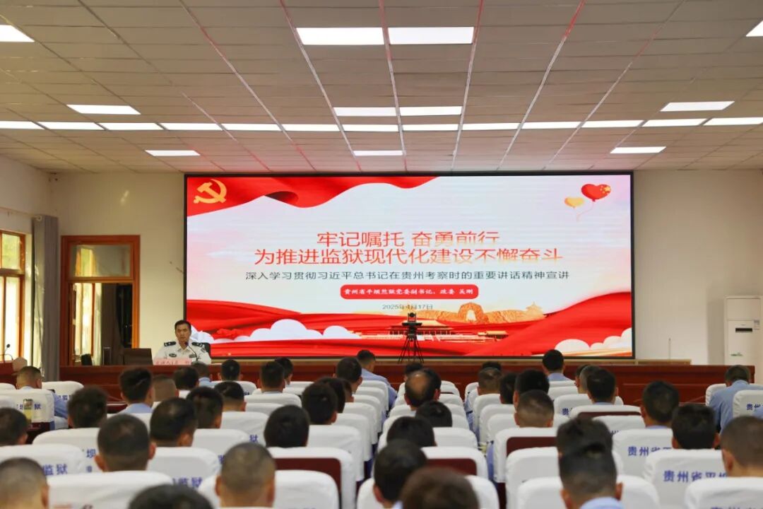 近日,平坝监狱组织召开深入学习贯彻习近平总书记在贵州考察时的重要讲话精神宣讲会。监狱党委副书记、政委吴刚作宣讲报告,监狱党委班子成员、除值班,执勤外全体民警参加。