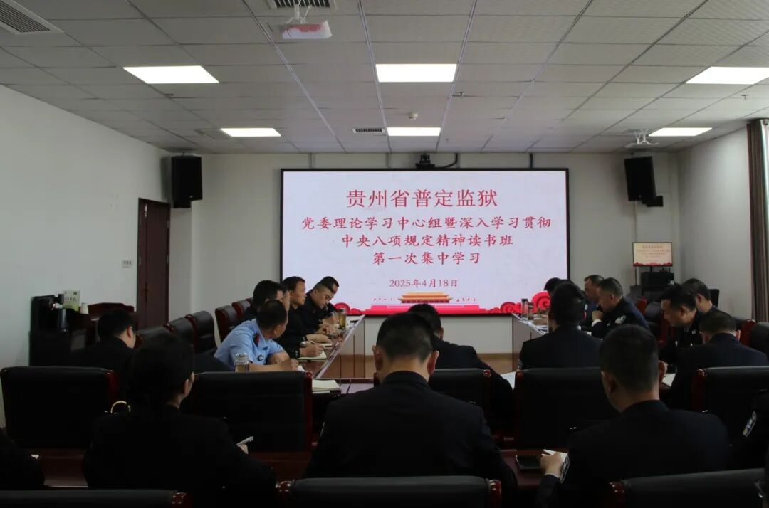 4月18日至22日,普定监狱党委结合工作实际,组织开展4月份党委理论学习中心组暨深入贯彻中央八项规定精神学习教育读书班集中学习研讨。党委书记、监狱长朱贵华主持会议,党委班子成员参加,各党支部书记、青年民警代表列席。