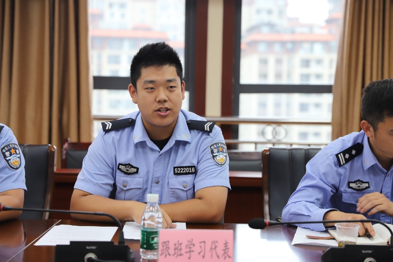 新警殷子涵作代表发言:“此次学习机会来之不易,我们定会倍加珍惜、不负众望。在跟班学习中端正态度、严守纪律、勤学多问、刻苦实践,把学到的好经验、好作风带回监狱工作岗位,努力成为合格的监狱人民警察!”