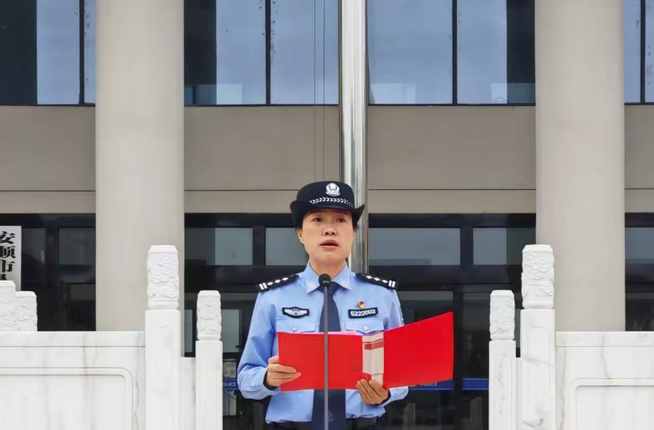 伴随着激昂雄壮的《义勇军进行曲》,鲜艳的五星红旗冉冉升起,迎风飘扬。全体民警面向国旗敬礼,目光坚定,向伟大的祖国母亲致以崇高的敬意。