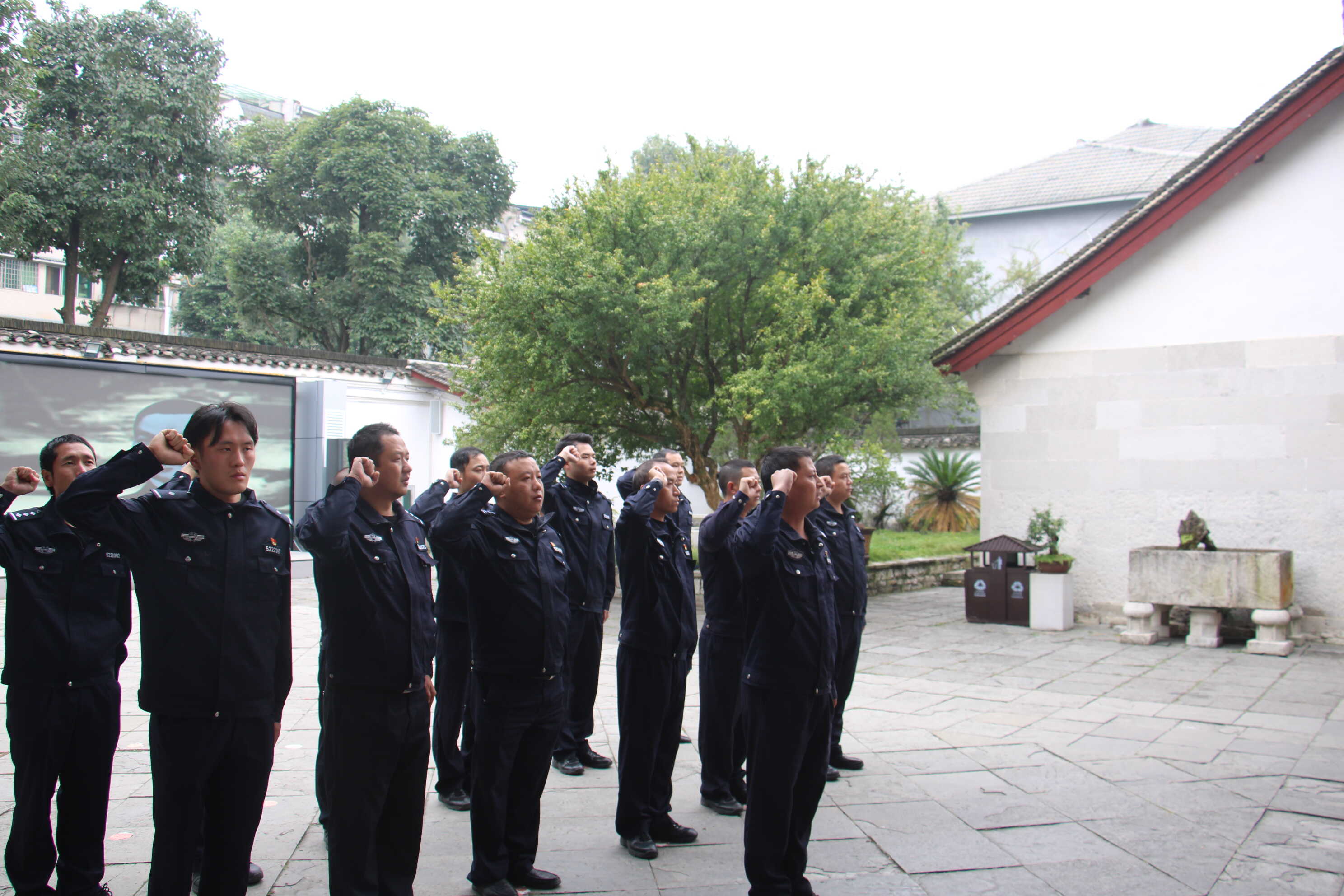 铿锵有力的宣誓声在王若飞故居和黄齐生故居前响起。参观结束后,民警们整齐列队,面对鲜红党旗,举起右拳,重温入党誓词。