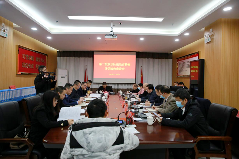 省评估验收组通过听取汇报、查阅资料、现场问答、个别谈话等方式,全面了解省司法厅第二批队伍教育整顿各项工作开展情况。在反馈会上,杨光杰副书记充分肯定了全省司法行政系统队伍教育整顿工作,认为全省司法行政系统认真贯彻落实以习近平同志为核心的党中央作出的决策部署,围绕打造忠诚干净担当的政法铁军这条主线,统筹推进第一批、第二批政法队伍教育整顿,按照“两高”要求,注重“三个突出”,较好地推动全省司法行政系统队伍教育整顿取得了显著成效。杨光杰副书记就下步工作提出四点要求:一是全省司法行政系统要以贯彻落实党的十九届六中全会精神为主题,始终坚持党对政法工作的绝对领导,进一步筑牢政治忠诚。二是以整改落实中央督导组反馈意见为主线,确保问题整治清仓见底,进一步推动查纠整改取得实效。三是以完善制度机制建设为主导,持续推动顽瘴痼疾整治,进一步巩固教育整顿成效。四是以常态化整治顽瘴痼疾为主体,健全顽瘴痼疾问题排查整治机制,推动执法司法突出问题的持续整治,进一步推动司法行政工作能力和水平迈上新台阶。