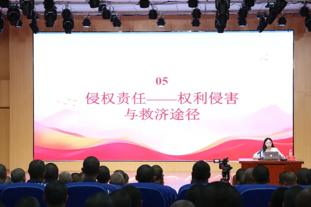 5月29日,普定监狱邀请文隽律师事务所专职律师彭飘走进监狱开展民法典专题讲座。彭飘老师结合实际案例,围绕民法典中与罪犯生活、回归社会密切相关的内容,如婚姻家庭、财产继承、合同纠纷、侵权责任等方面进行深入讲解,让罪犯更直观地理解民法典的重要性和实用性。
