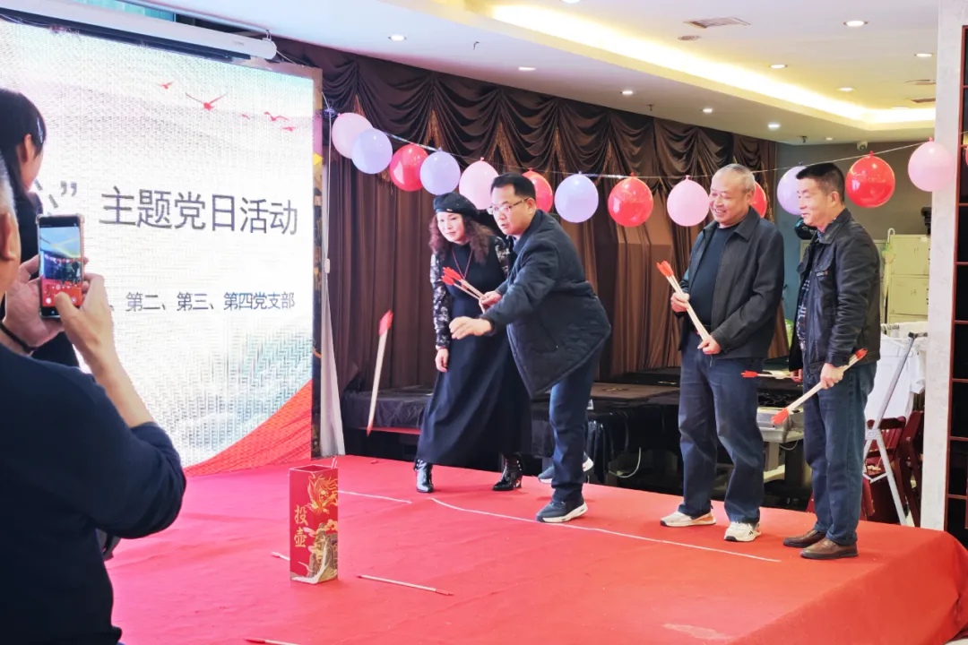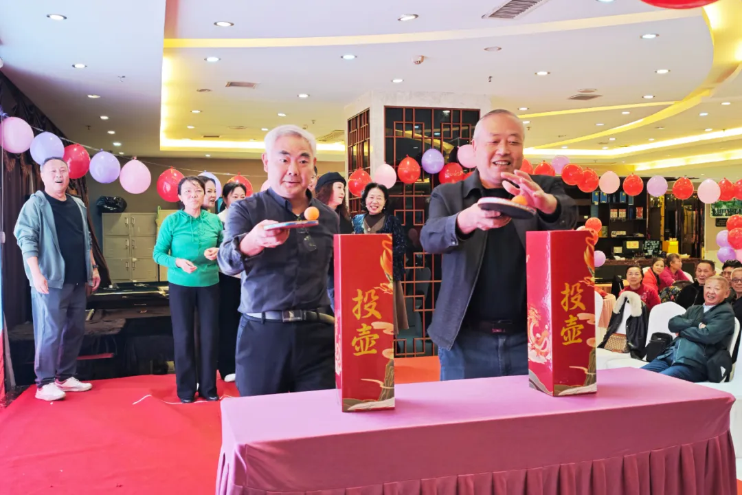 最热闹的当属趣味活动环节。在“你比我猜”中,老搭档们心有灵犀、配合默契,一个动作便能引发阵阵会心笑声;“运乒乓球”考验定力,大家屏息凝神、稳中求进,展现出不凡的沉稳风采;“听歌猜名”环节,经典旋律响起,不少老同志随声轻和,眼中闪烁着青春回忆的光芒;而传统“投壶”游戏更是将气氛推向高潮,每有“中标”,现场便爆发出热烈掌声与欢呼。整个活动现场笑语不断,温情流动,老同志们在轻松愉悦中重温峥嵘岁月,深切感受到组织浓浓的关怀与温暖。