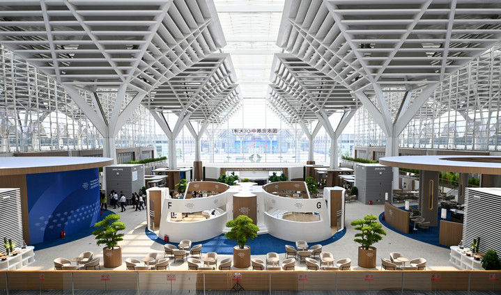 2024年,大连国际会议中心,将双手放在一个感应器上,人工智能技术便可识别心电图数据并描绘心情颜色,形成个人专属的“心跳签名”;2023年,天津梅江国际会展中心,基于脑机接口技术,“神工”康复机器人系统帮助人用意念打字……