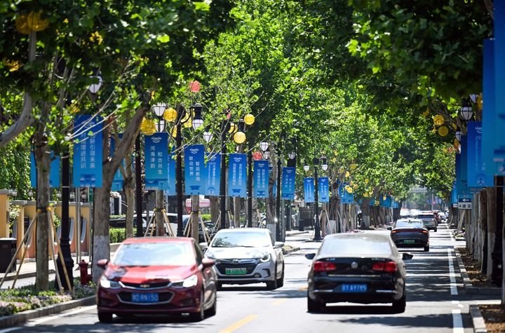 夏至已过,中国北方港口城市天津骄阳似火。一些道路的显要位置已经贴上了蓝色的道旗和标语,中英文对照的“夏季达沃斯”元素预告着一场盛会即将开启。