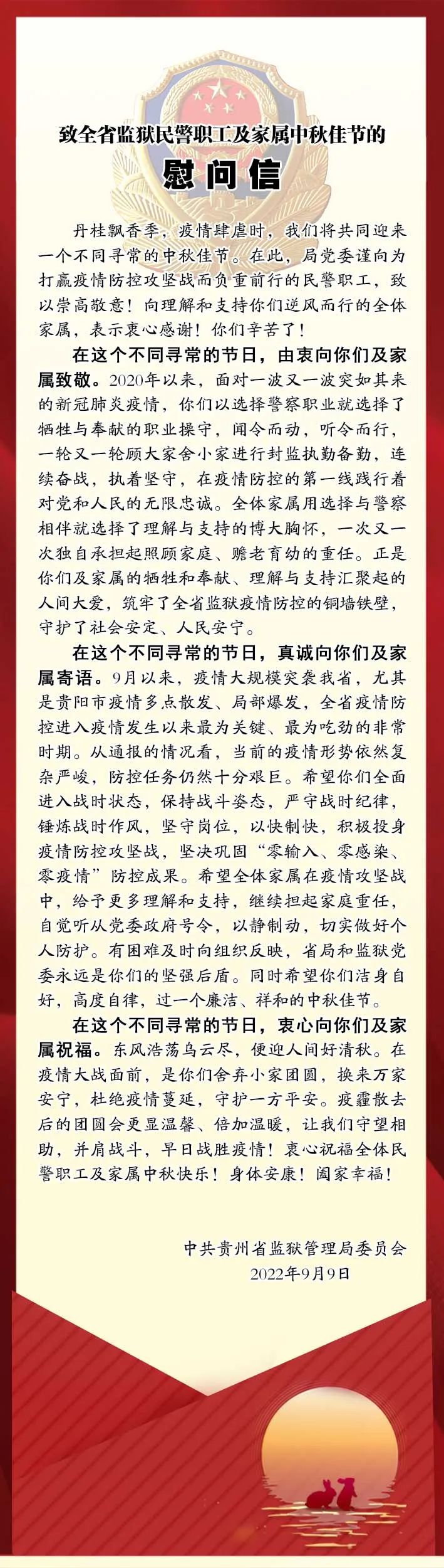 致全省监狱民警职工及家属中秋佳节的慰问信