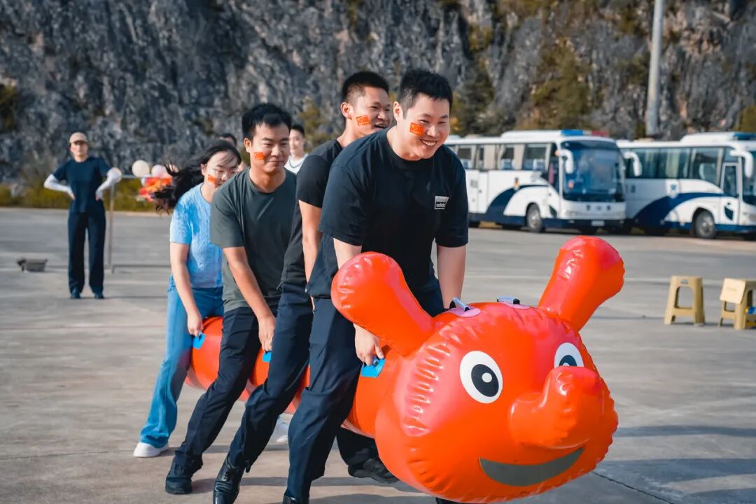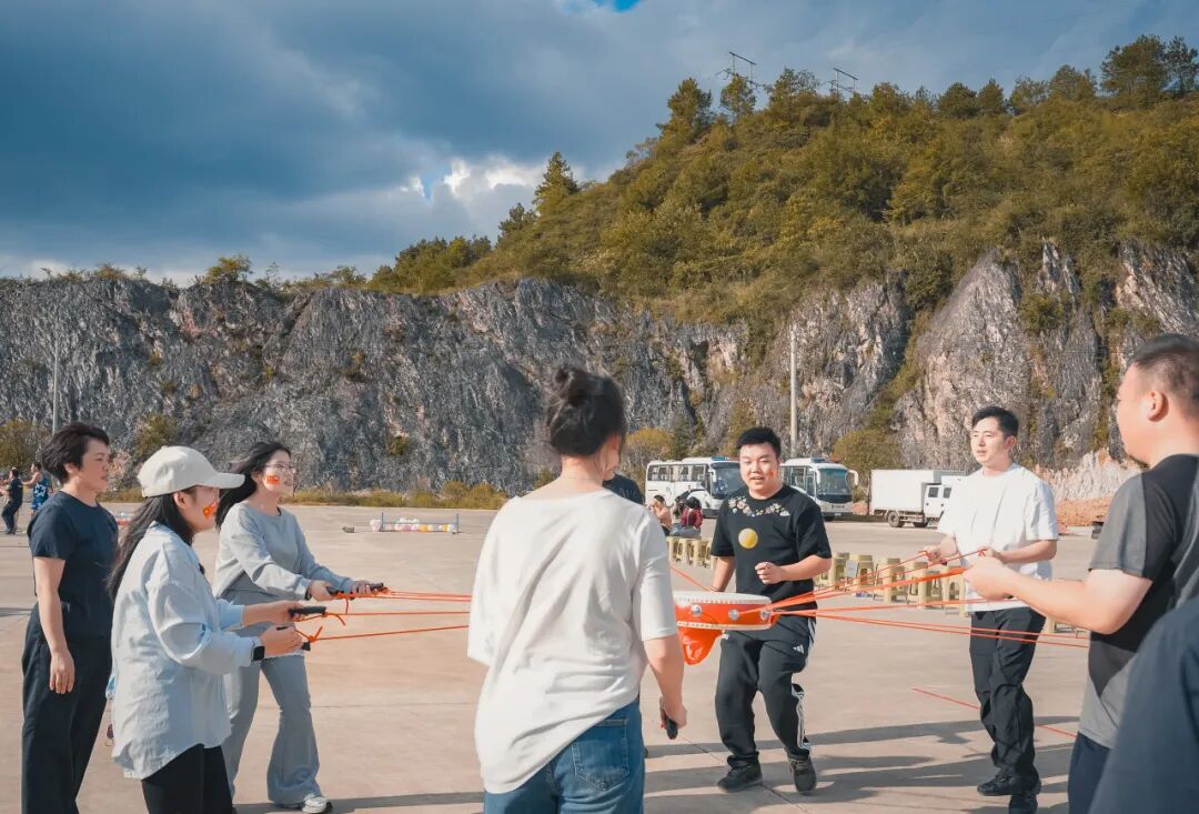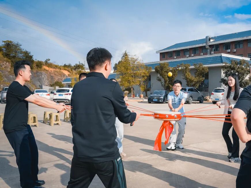 “同心鼓”比赛中,队员们默契配合,齐心协力。“毛毛虫竞速”项目中,搭档们步调一致,携手前行……