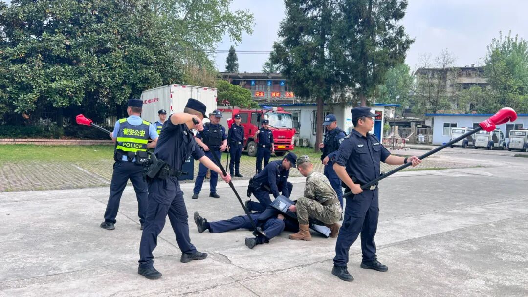 当天下午,三名教官重点围绕警械具和单警装备使用,徒手攻防、搜身等实战技能,现场管控、突发事件处置等基本警务战术,组织开展实战训练。在此基础上,采取理论与实践相结合的模式,精心设计一批情景逼真、真实对抗的场景,灵活运用盾、棍、叉等警用装备,通过分组训练、角色互换、交流互鉴等方式,针对性开展“最小作战单元”协同作战技能演训,做到训练内容与实战任务一致、项目设置与实战环境一致,有效提升了“三警”最小作战单元现场处置水平。
