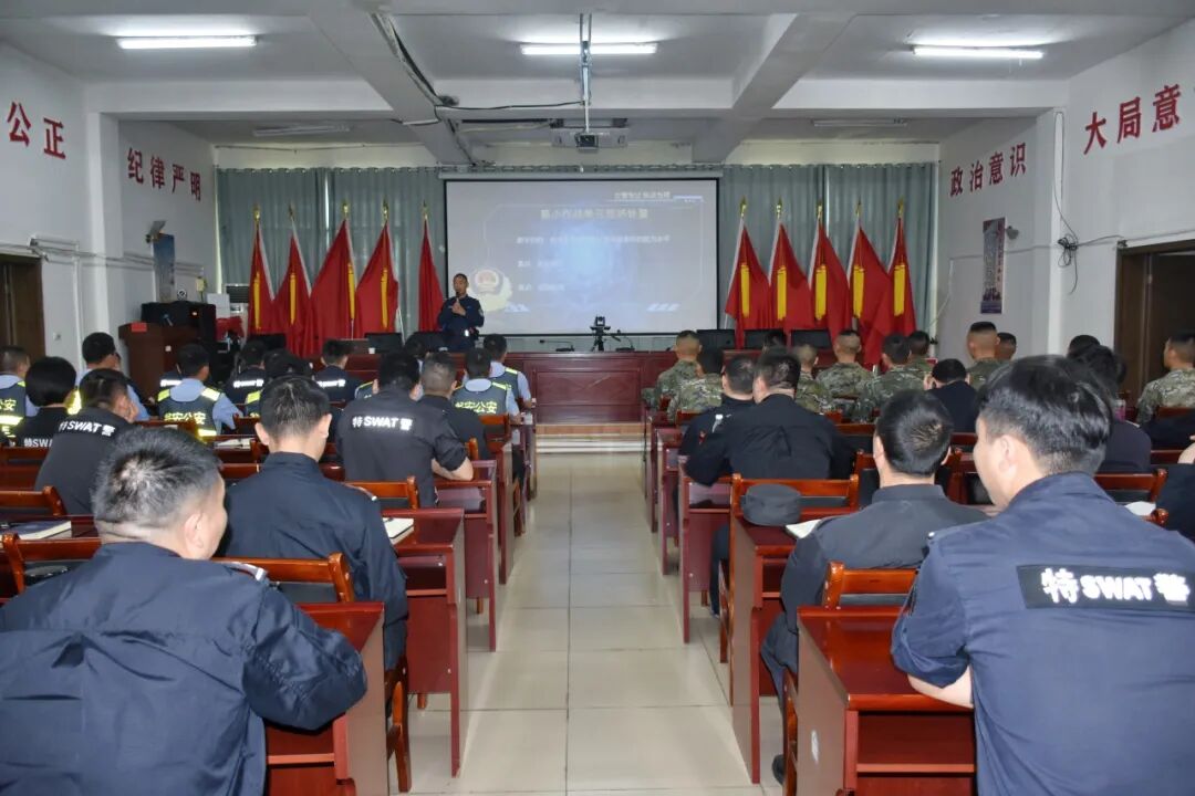 训练采取“理论教学+实操”的方式进行。上午,郭春龙教官围绕最小作战单元处置原则,详细讲解了应对处置方法、技战法、要求和要素,就现场处置法律法规、语言控制、战术协同、安全防护、制服技巧、武器警械使用等内容进行细致解读。同时,挑出干货重点,通过案例讲解、警情模拟、实操实训等方式,针对执法过程中遇到的常见处置问题提供了具体解决方法。教官理论讲解、动作示范简洁明晰,重点突出、详略得当,为大家上了一堂别开生面的理论课。