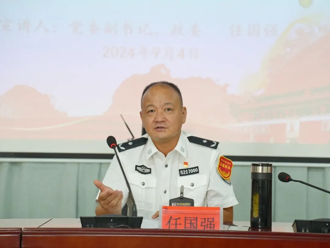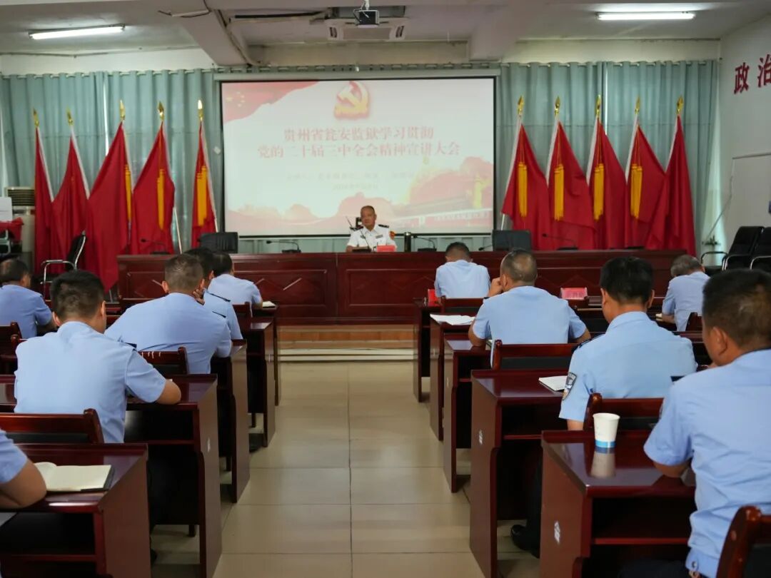 9月4日,瓮安监狱召开学习贯彻党的二十届三中全会精神宣讲会。监狱党委副书记、政委任国强作宣讲报告,党委班子成员、中层领导、党员民警代表参加会议。