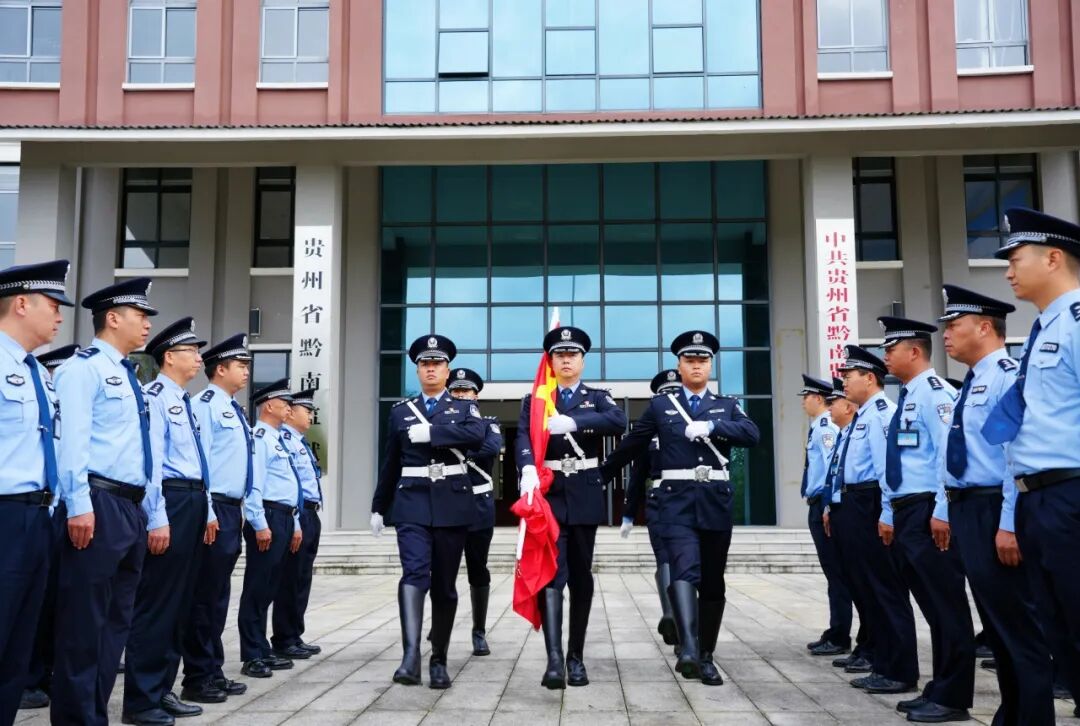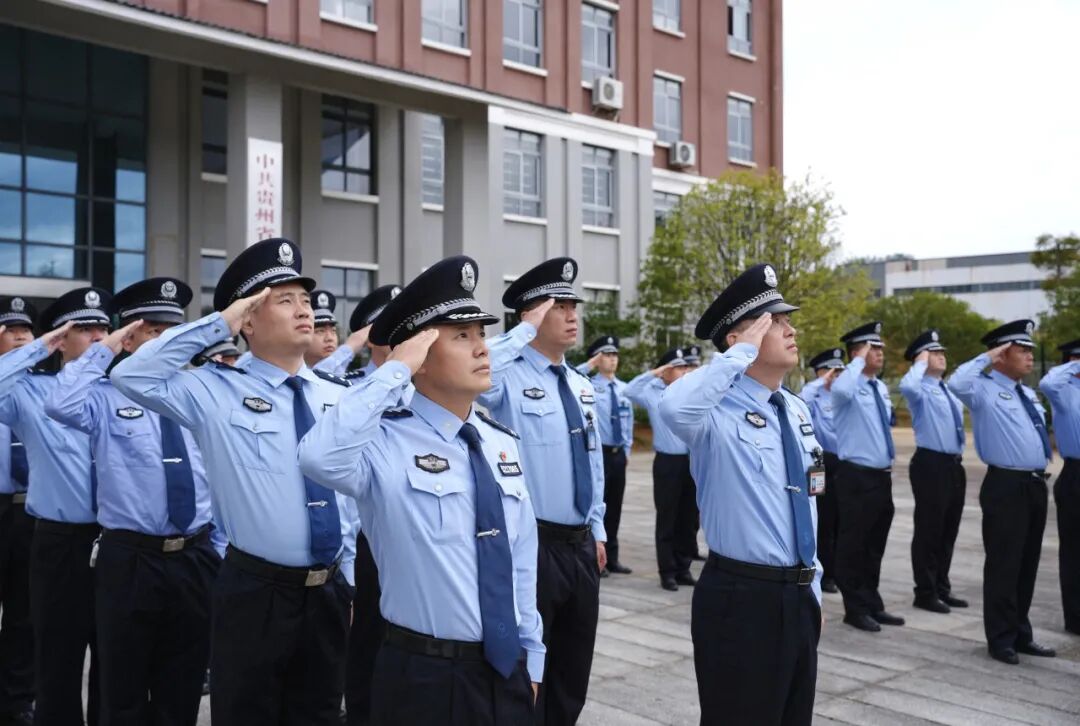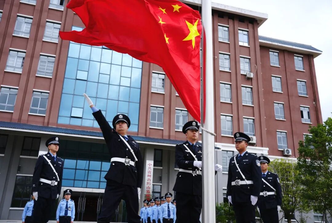 国旗护卫队步伐铿锵,护卫着鲜艳的五星红旗走向旗台。伴随着雄壮激昂的《义勇军进行曲》,五星红旗冉冉升起,迎风飘扬。现场全体民警神情庄重,肃立致敬,共同表达对伟大祖国的无限热爱和崇高敬意,祝愿祖国繁荣昌盛。