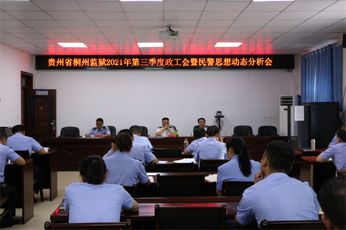 为全面掌握民警思想动态,有针对性的做好思想政治工作,9月3日上午,桐州监狱组织召开2021年第三季度政工会暨民警思想动态分析会。会议由党委委员、政治处主任章军主持,党委书记、监狱长杨健民出席会议现场并讲话,中层领导干部、各党支部书记、支委成员和政工干事参加会议。
